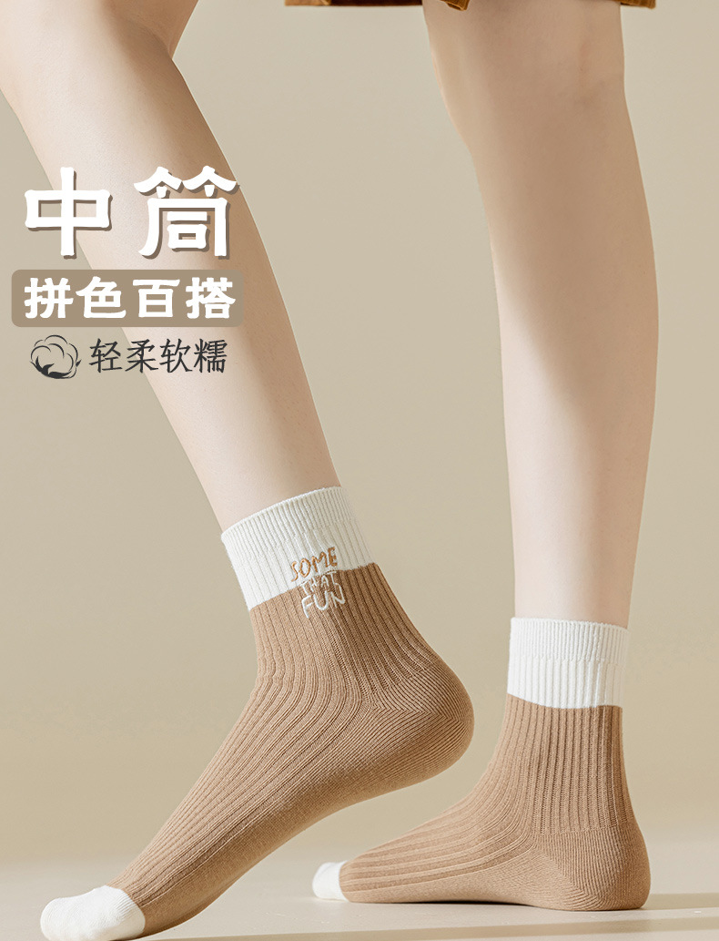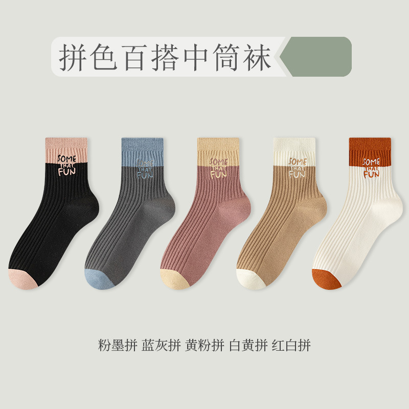 가을과 겨울 새 편지 색상 일치 중간 길이 양말 유행 올 매치 땀 흡수 통기성 수직 줄무늬 스타킹 Zhuji 양말 면 양말스토어 가기