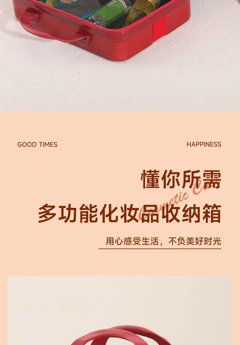 • 페스티벌 레드 609 - 업그레이드된 리본 스타일의 휴대용 화장품 케이스(이중 칸막이 메쉬 백 안감)