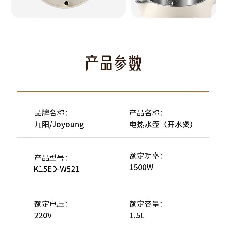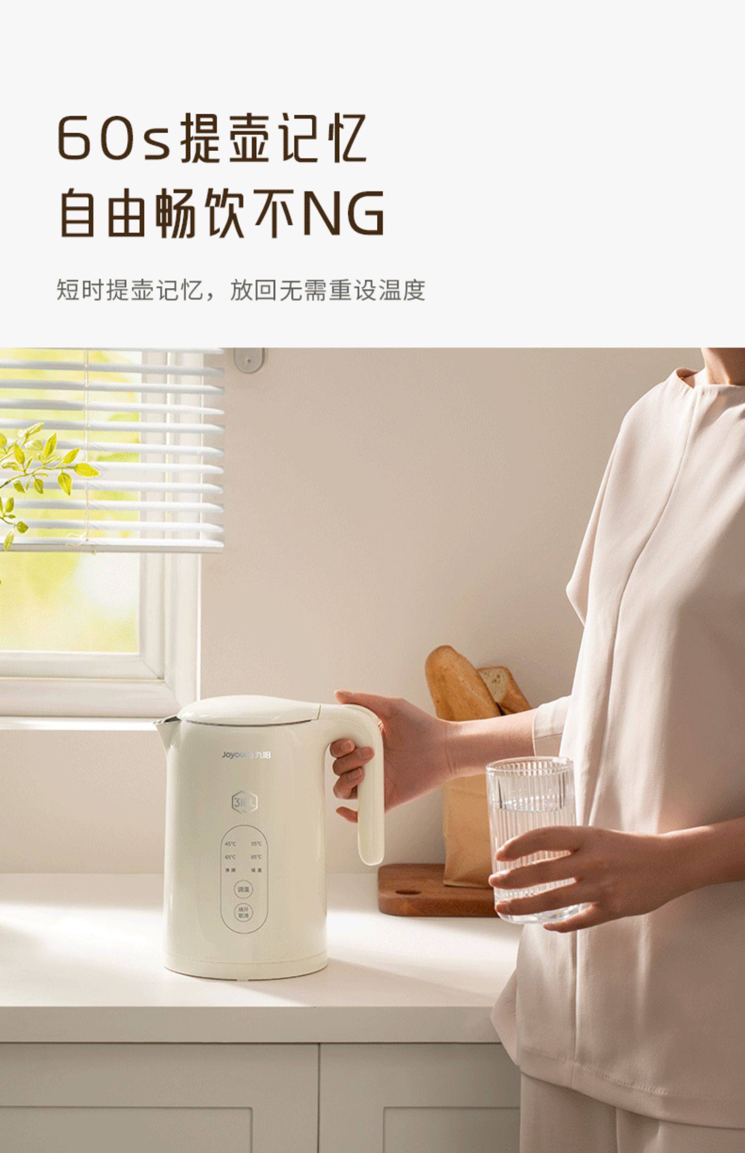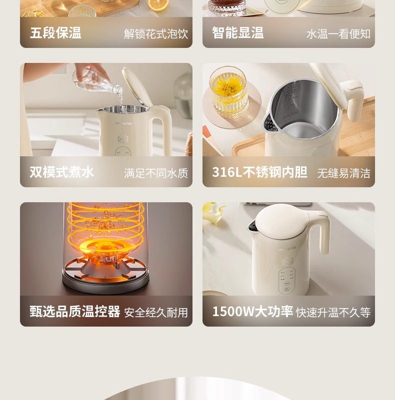 Jiuyang 전기 주전자 1.5L 보온병 주전자 5 물 온도 316L 원활한 라이너 일정한 온도 K15ED-W521스토어 가기