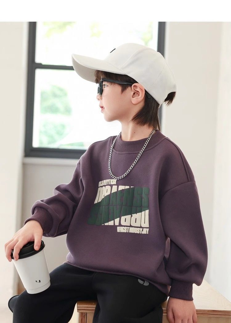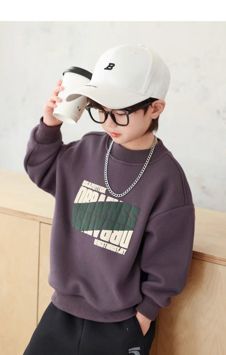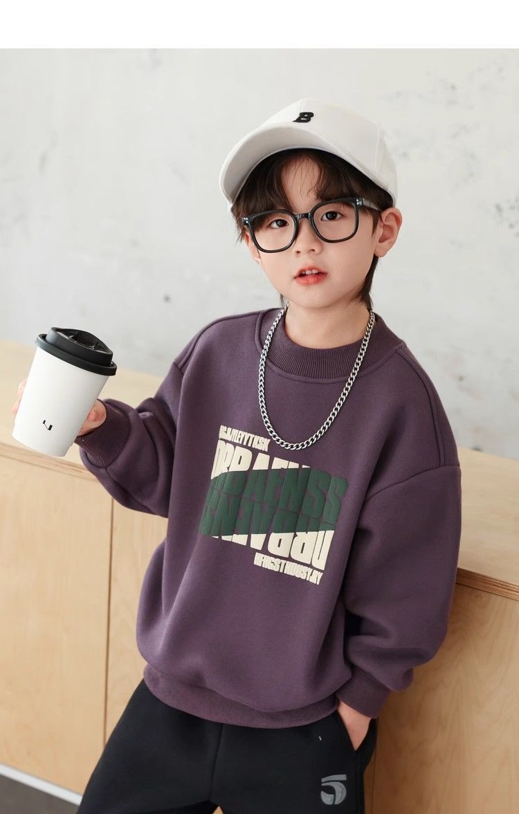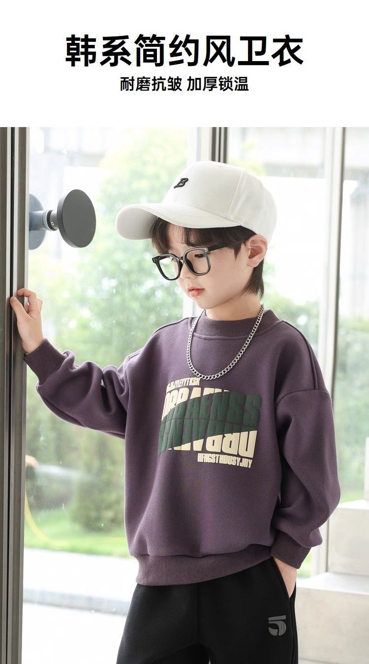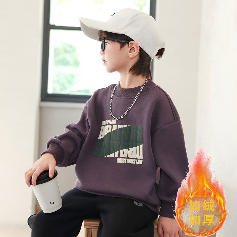 어린이 소년 벨벳 스웨트 셔츠, 중대형 어린이 가을 겨울 기본 레이어 2025 새로운 따뜻하고 두꺼운 소년상의, 겨울에 멋집니다.스토어 가기