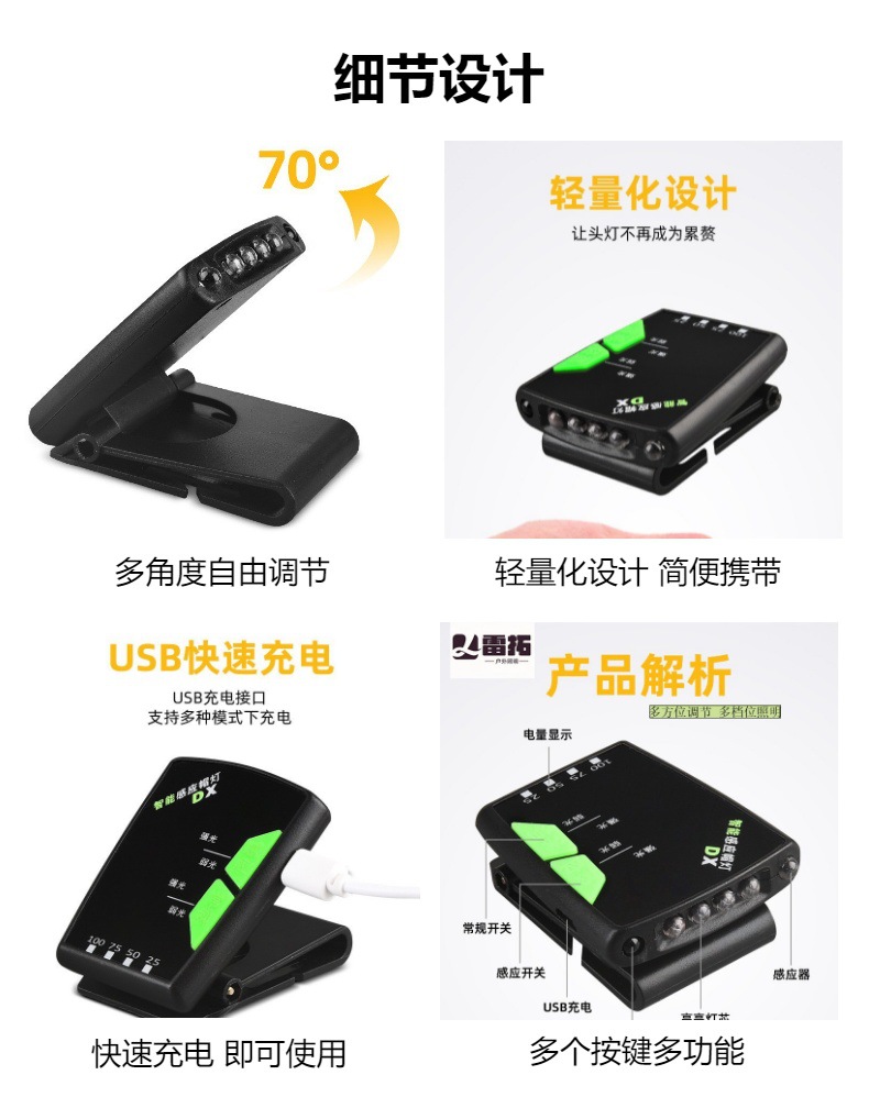 LED 헤드램프 낚시용 헤드라이트, 긴 배터리 수명, 센서 캡 클립 라이트, USB 충전, 야간 낚시용 특수 강력 조명스토어 가기
