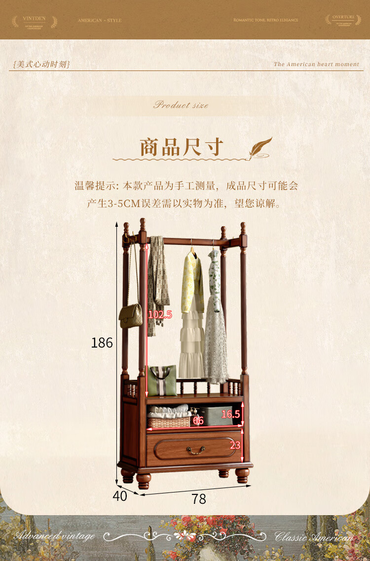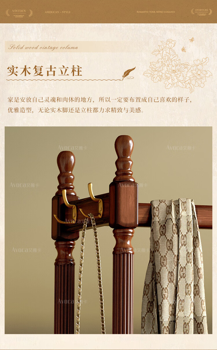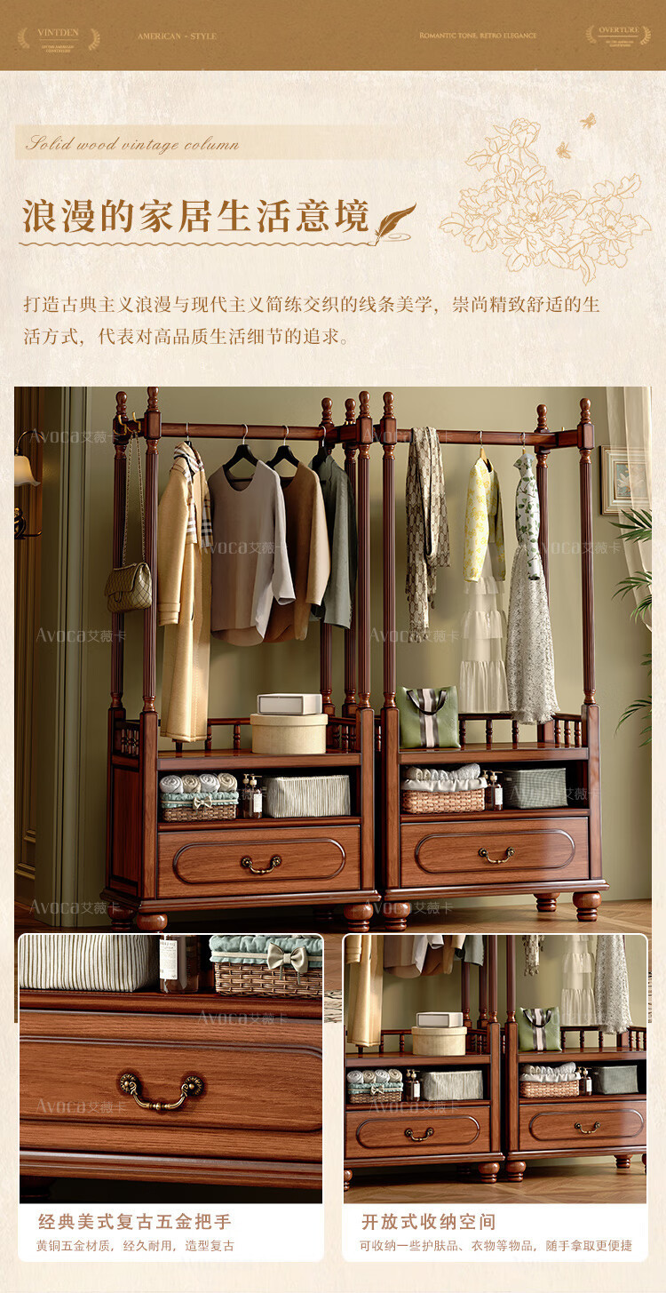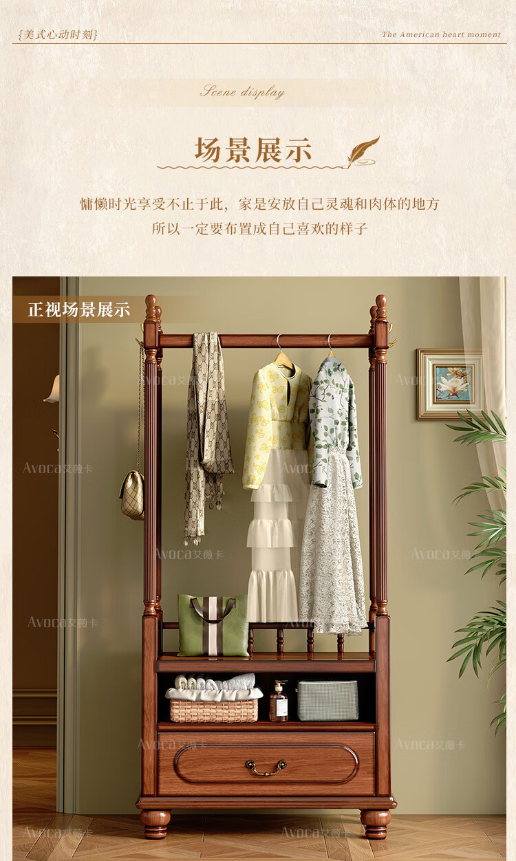 미국 스타일의 단단한 나무 코트 랙 바닥 침실 가구 옷 걸이 랙 다기능 보관 캐비닛스토어 가기