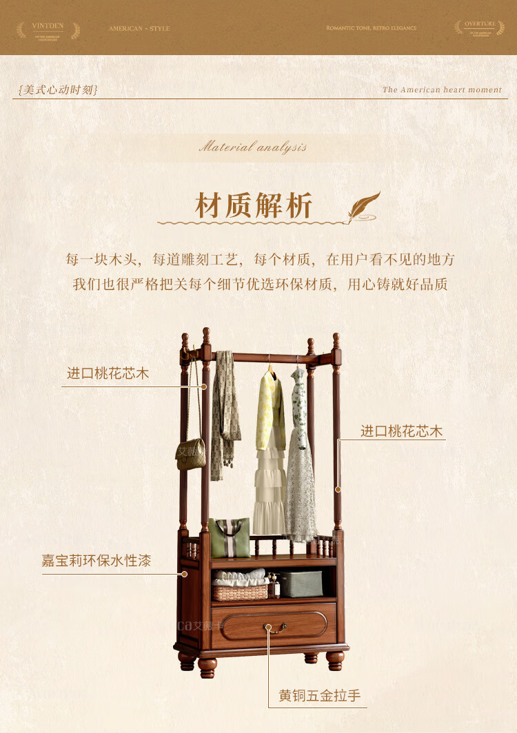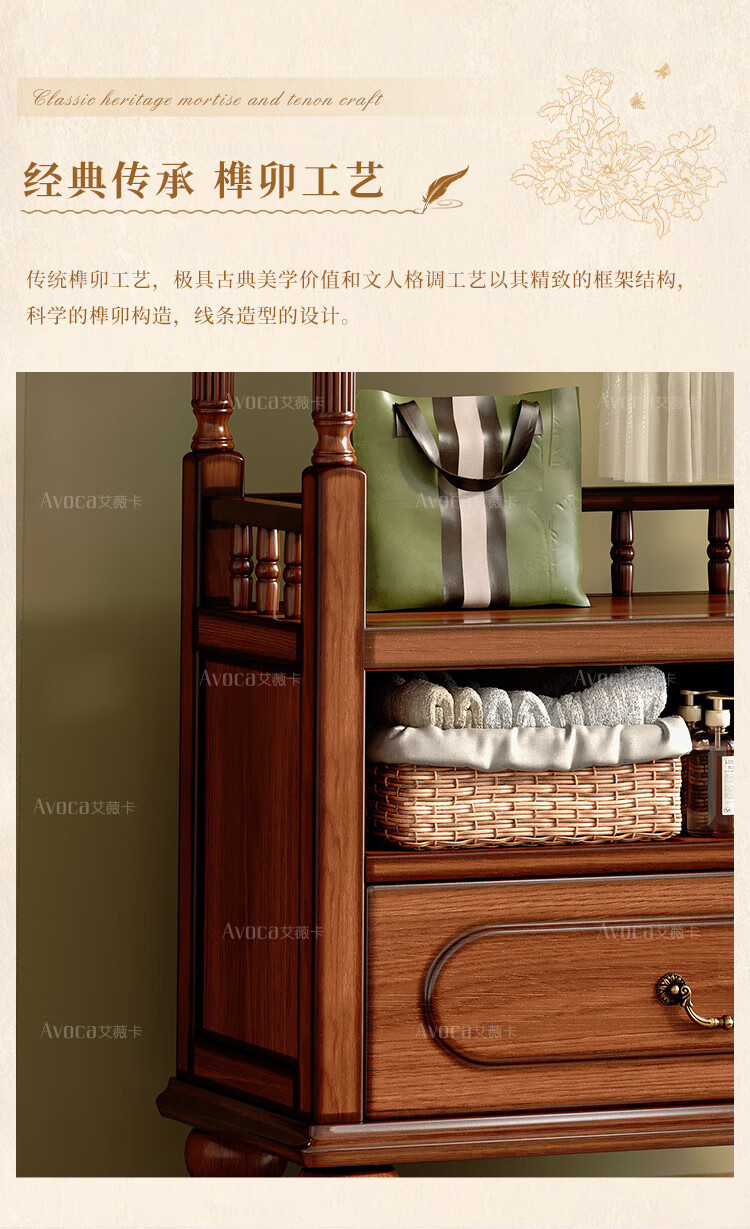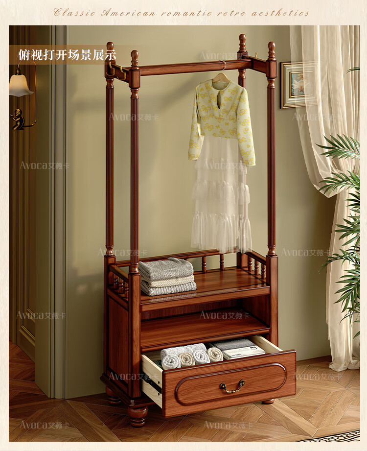 미국 스타일의 단단한 나무 코트 랙 바닥 침실 가구 옷 걸이 랙 다기능 보관 캐비닛