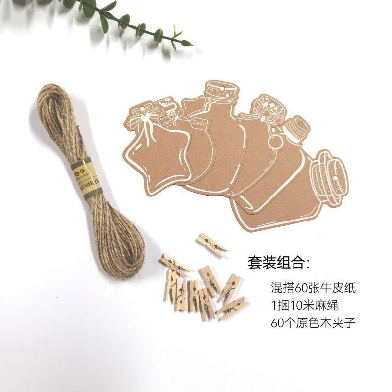 • 레트로 크라프트지 믹스 60매 + 대마줄 + 클립 60개