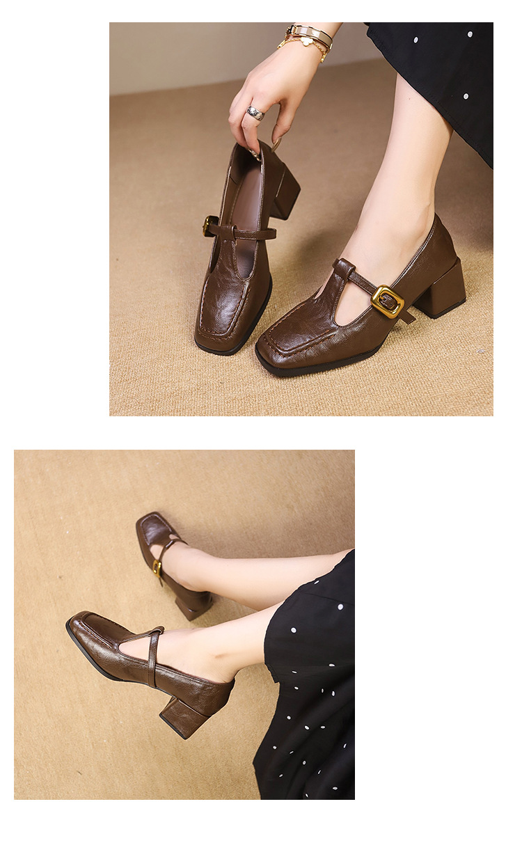 2024 봄과 가을 새로운 프랑스 스타일 레트로 스퀘어 청키 힐 싱글 레이어 신발 여성 한국 스타일 패션 요정 미드 힐 메리 제인 여성 신발스토어 가기