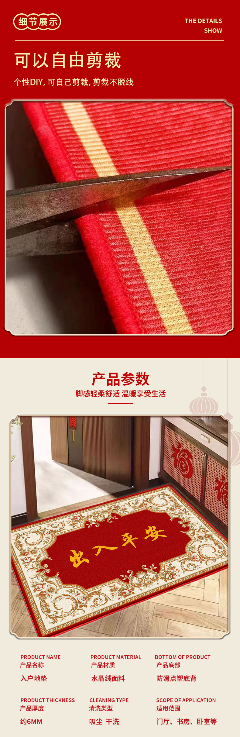 핑 홈 입구 입구 입구 바닥 매트 두꺼운 크리스탈 벨벳 미끄럼 방지 더러운 치료 쉬운 매트 풋 매트