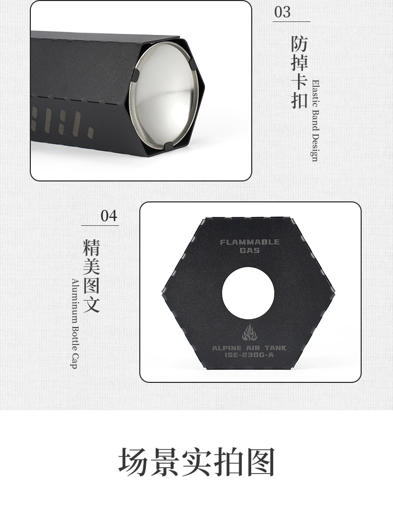 야외 캠핑 충돌 방지 카드 유형 가스 탱크 커버 멀티 컬러 육각형 금속 긴 가스 탱크 보호 쉘 플랫 가스 탱크 보호 커버