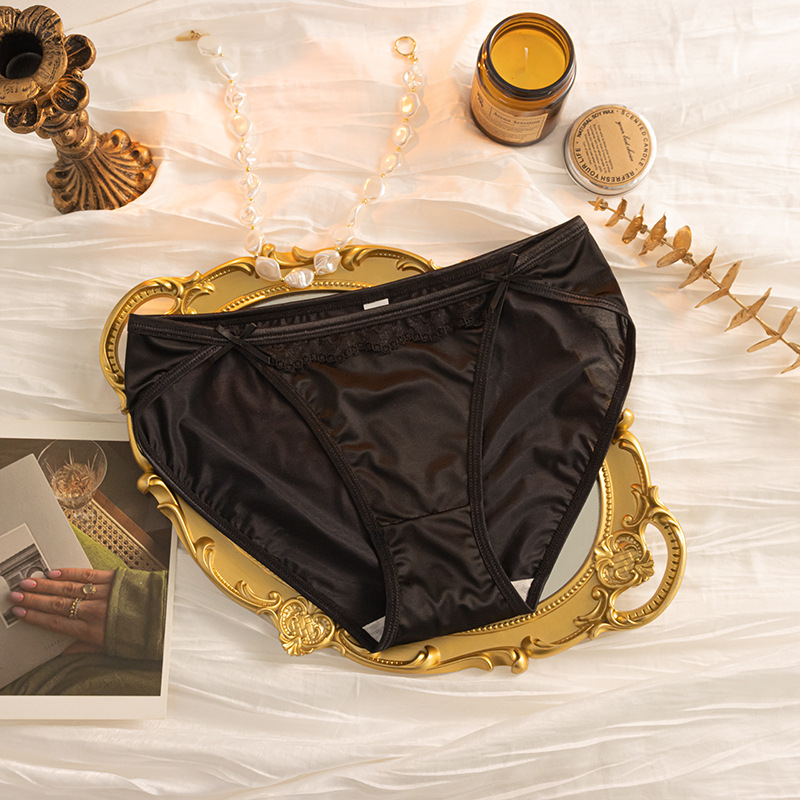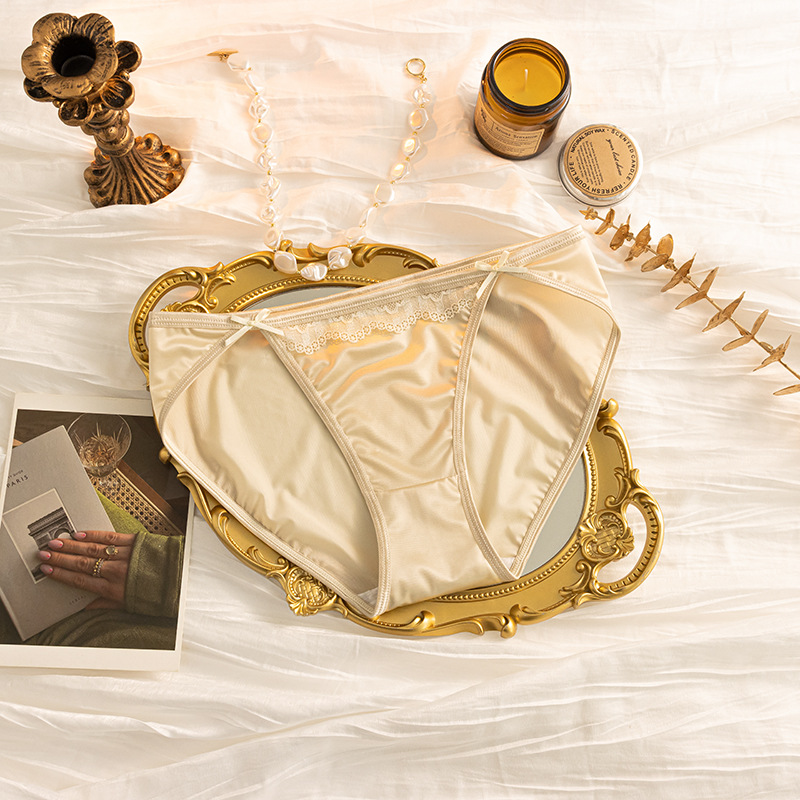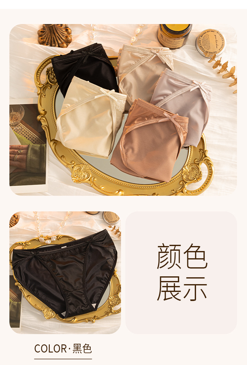 크로스보더 새틴 섹시 여성 속옷, 레이스 소녀용 로우라이즈 순면 가랑이 편안하고 통기성 좋은 심리스 팬티