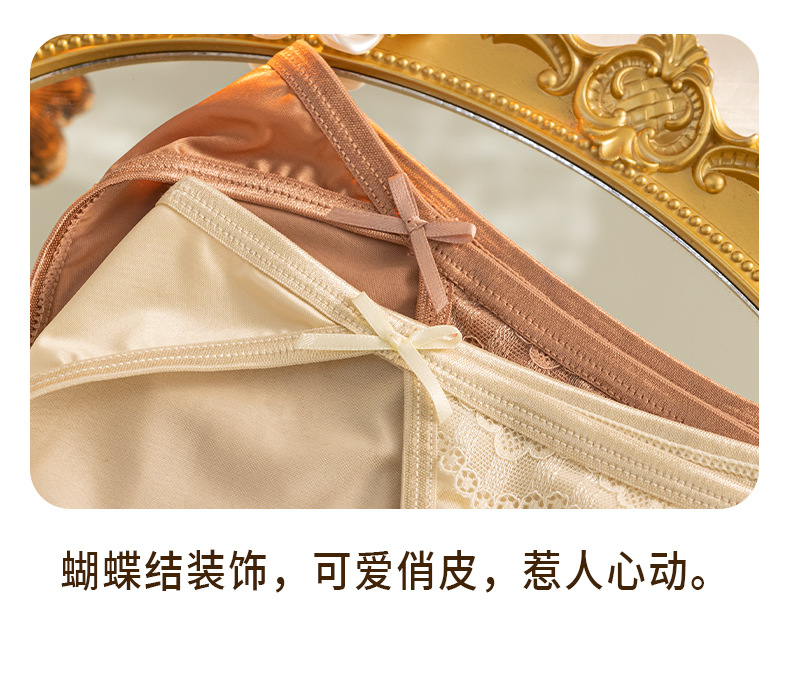 크로스보더 새틴 섹시 여성 속옷, 레이스 소녀용 로우라이즈 순면 가랑이 편안하고 통기성 좋은 심리스 팬티스토어 가기