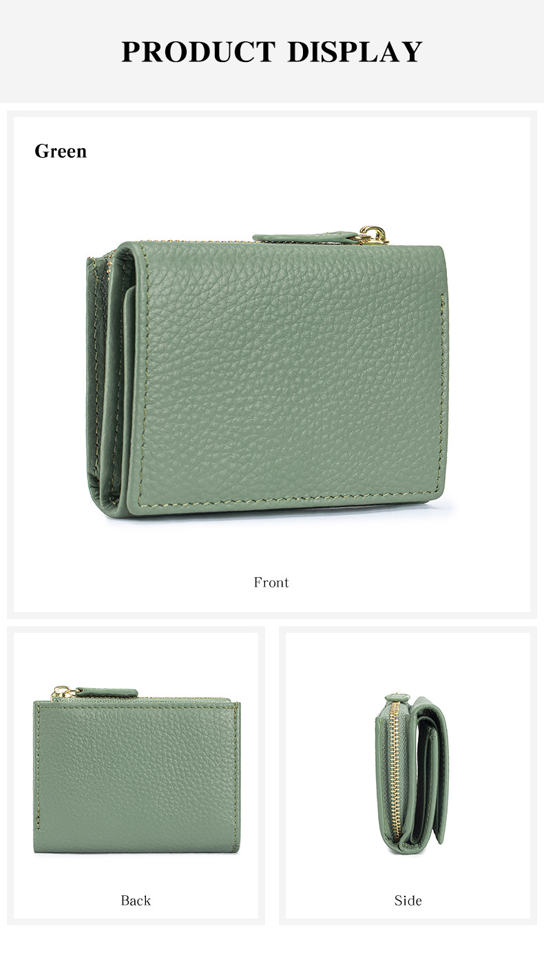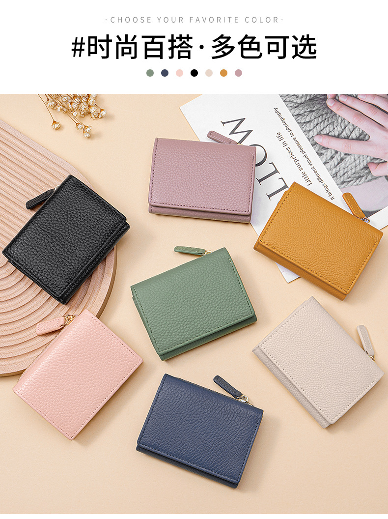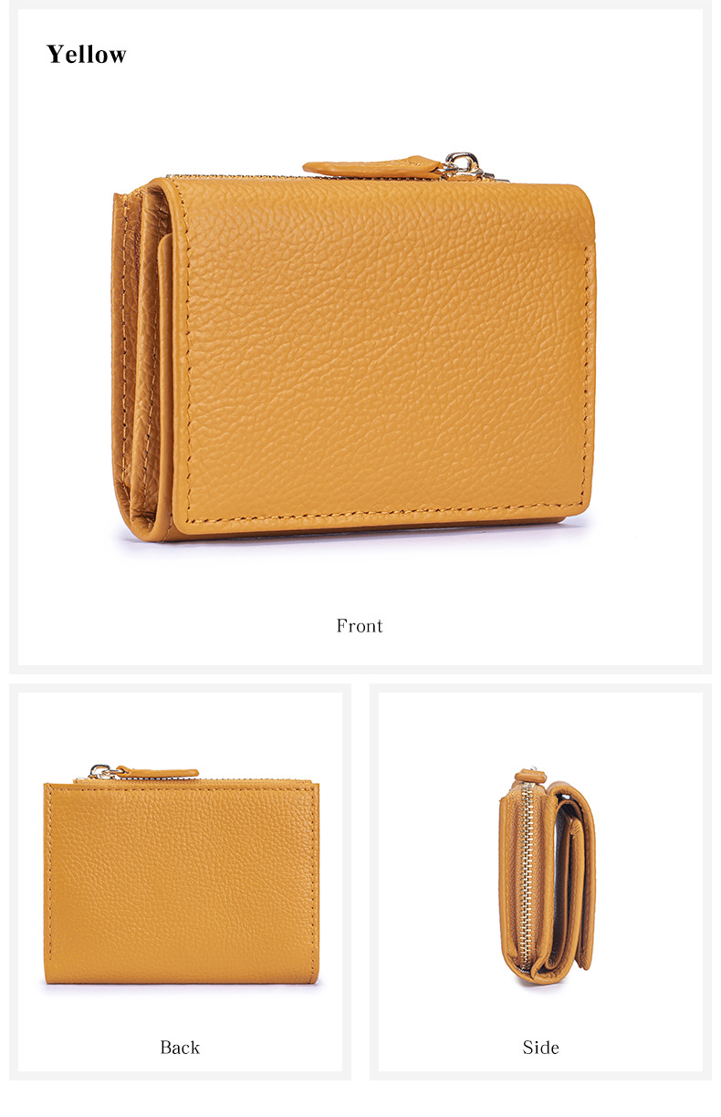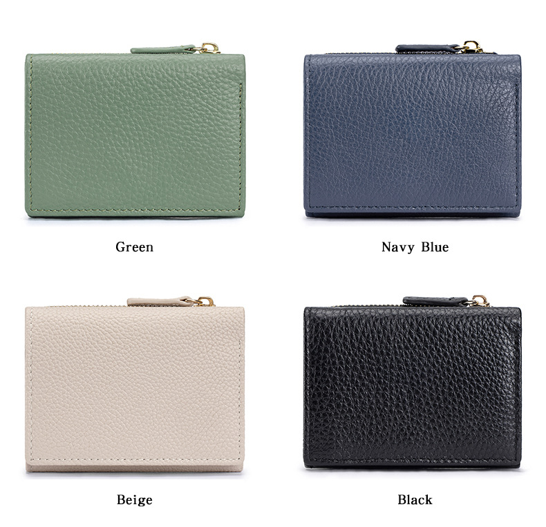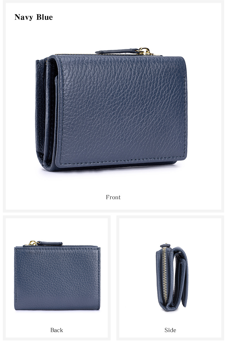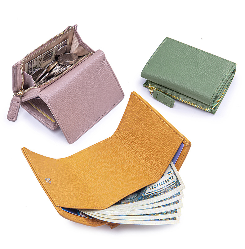 여성 정품 가죽 짧은 지갑 카드 가방 RFID 트라이 폴드 작은 지갑 미니 Cowhide 지퍼 동전 지갑 국경스토어 가기
