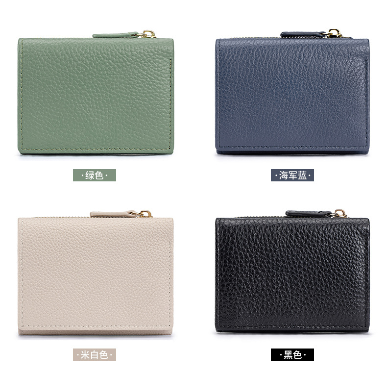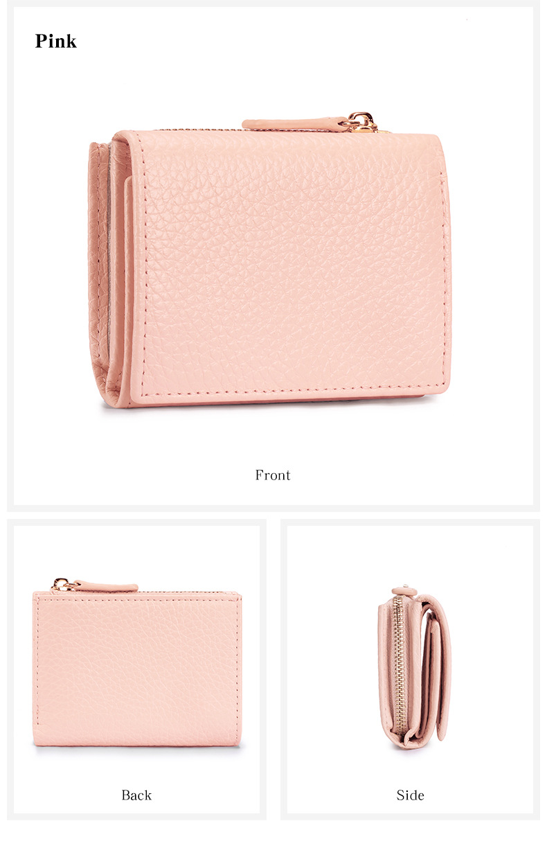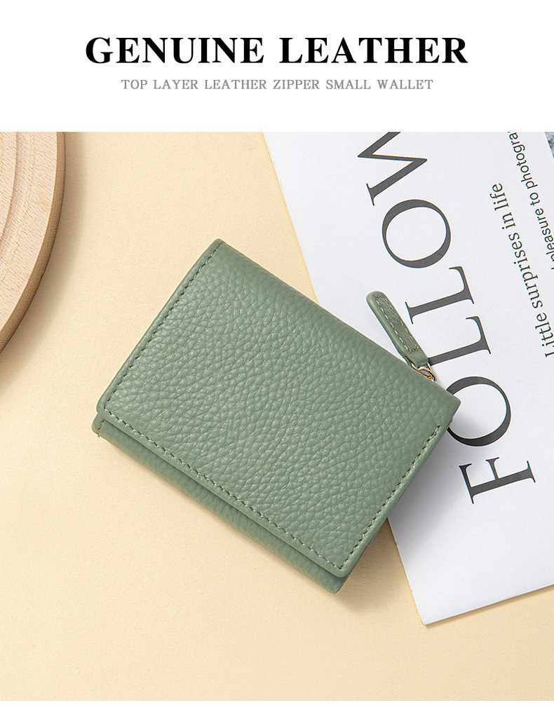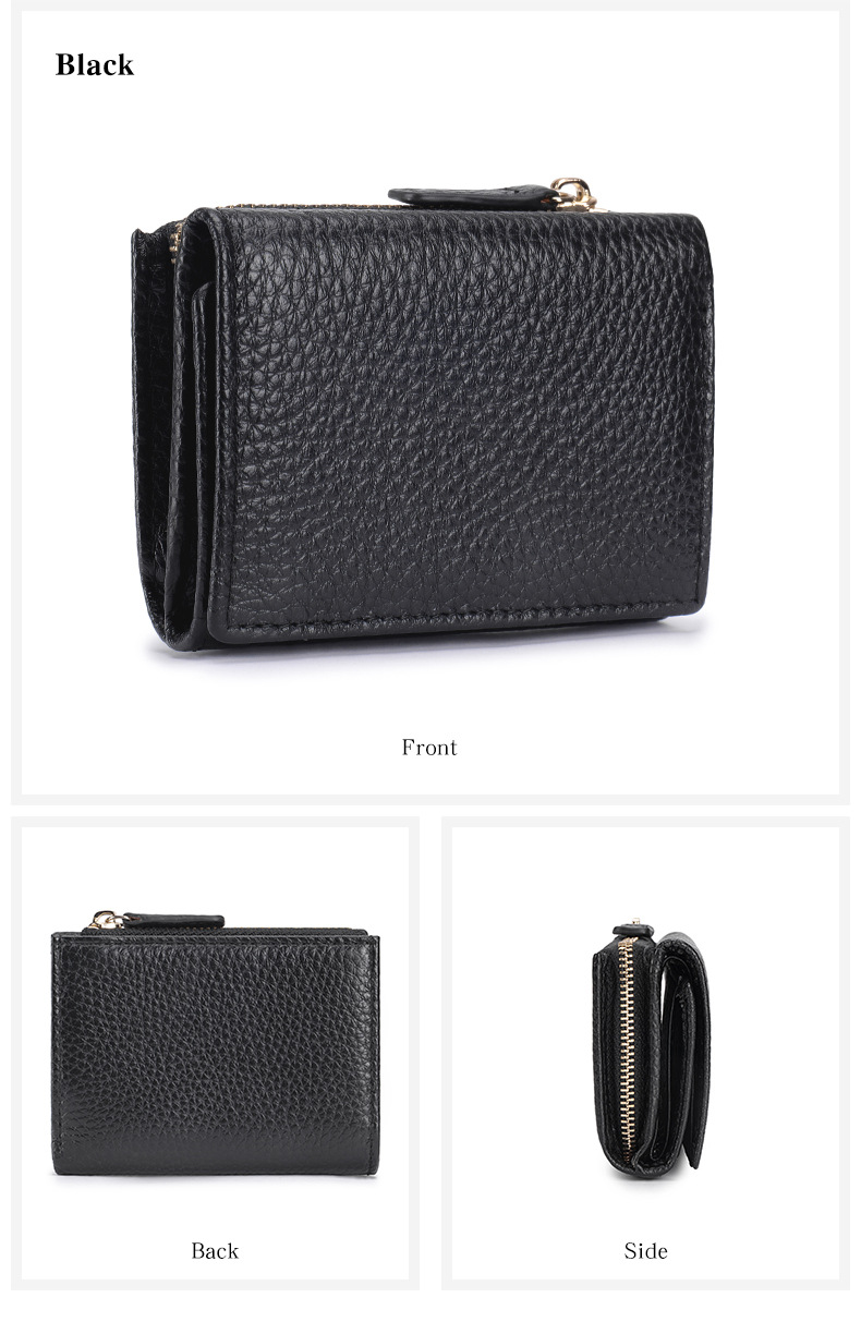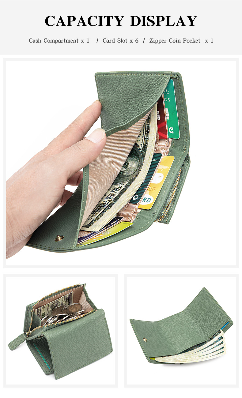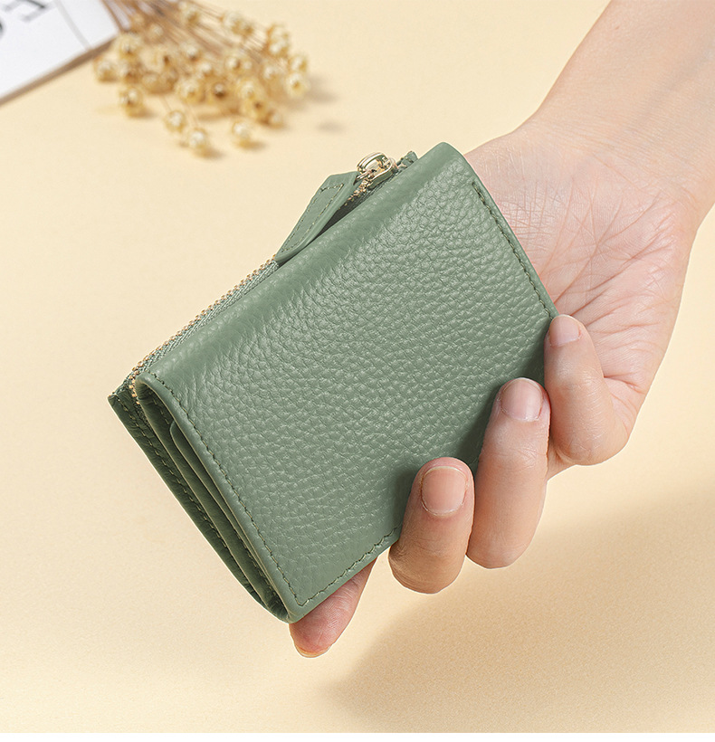 여성 정품 가죽 짧은 지갑 카드 가방 RFID 트라이 폴드 작은 지갑 미니 Cowhide 지퍼 동전 지갑 국경스토어 가기