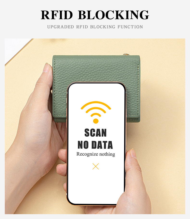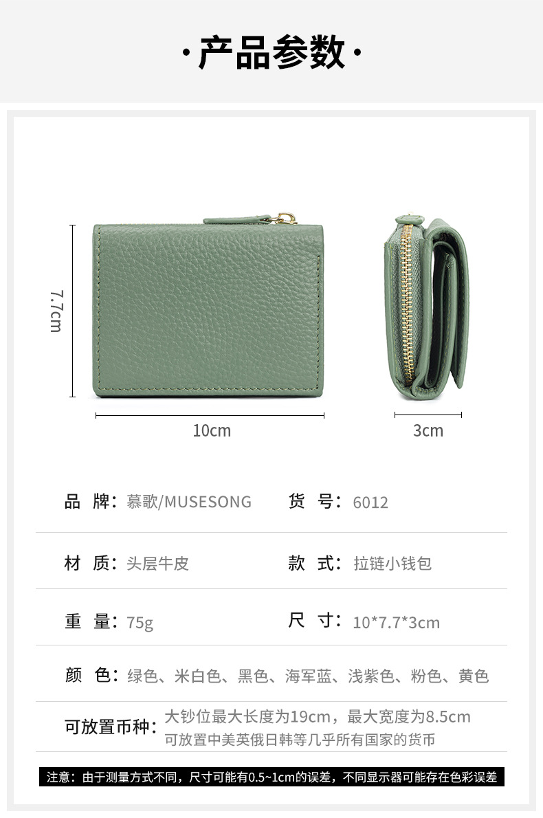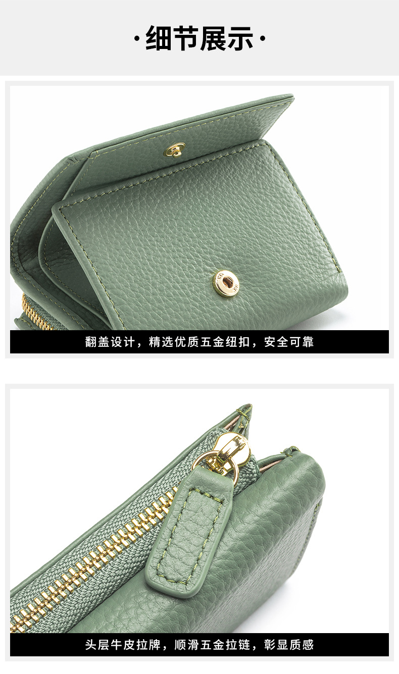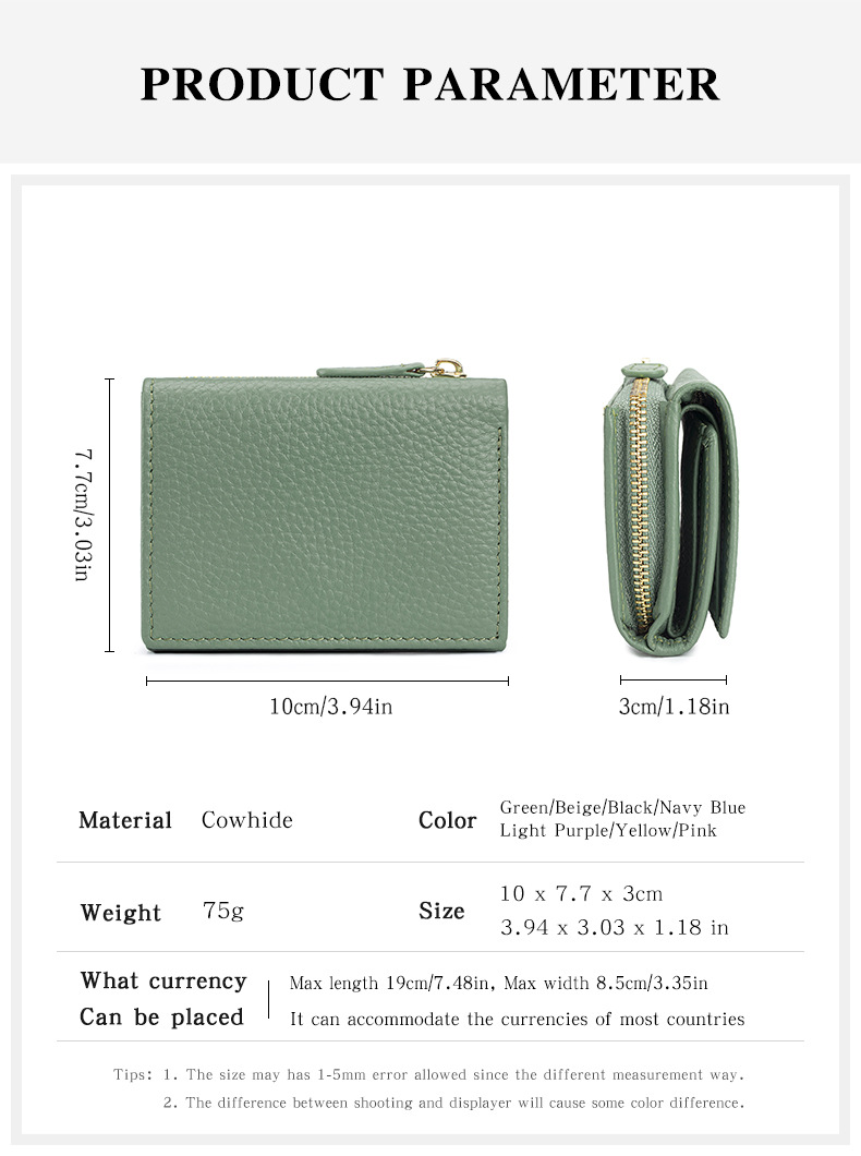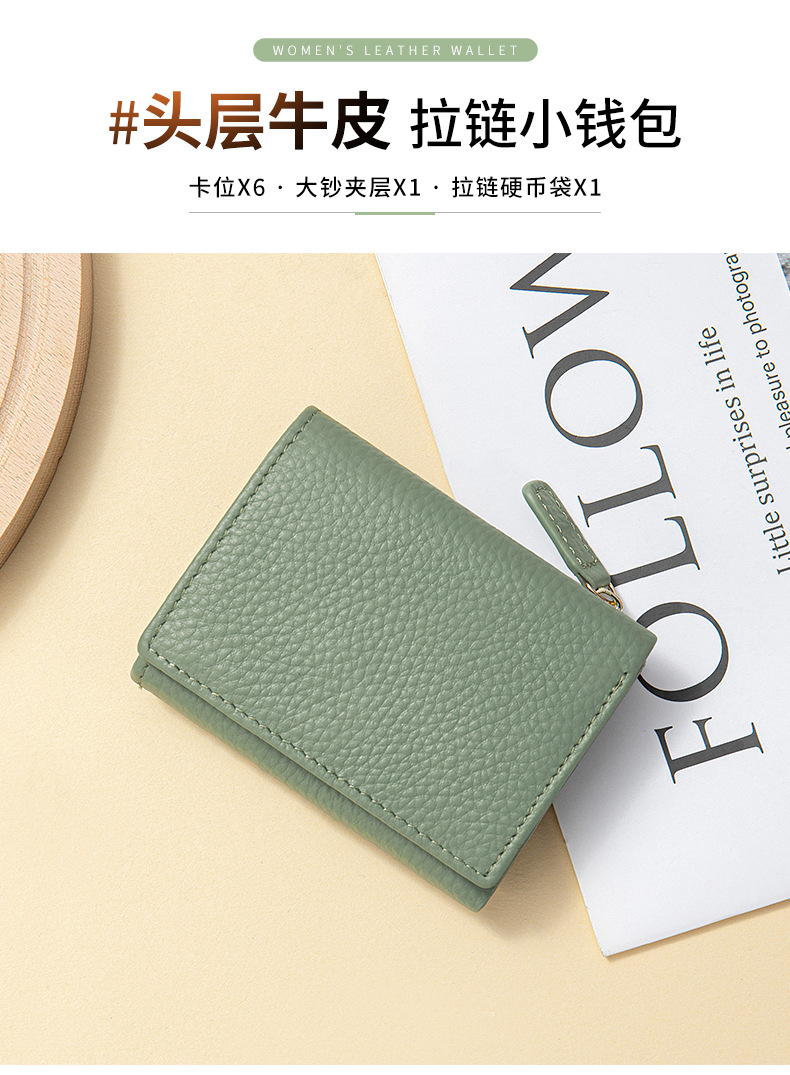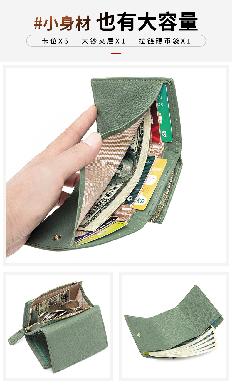 여성 정품 가죽 짧은 지갑 카드 가방 RFID 트라이 폴드 작은 지갑 미니 Cowhide 지퍼 동전 지갑 국경스토어 가기