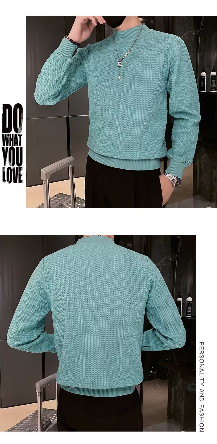 남자 한국식 슬림핏 내니티드베이스 셔츠 고급 트렌디 브랜드 올매치 솔리드 컬러 스웨터