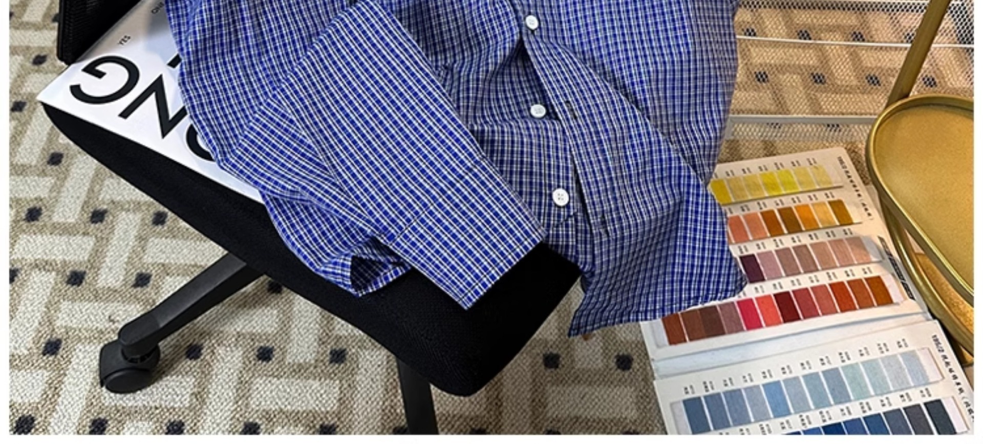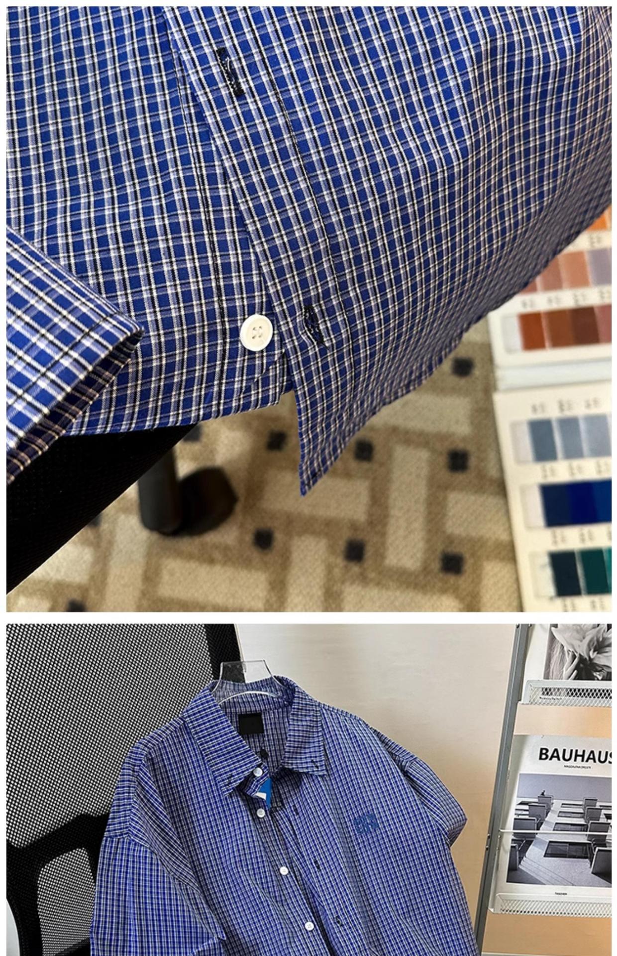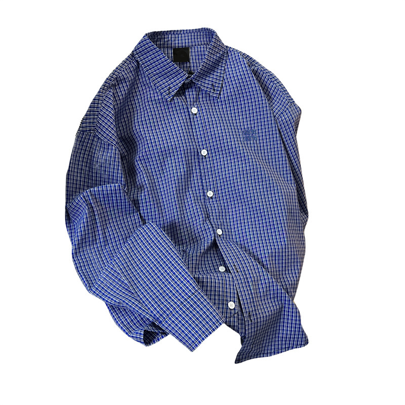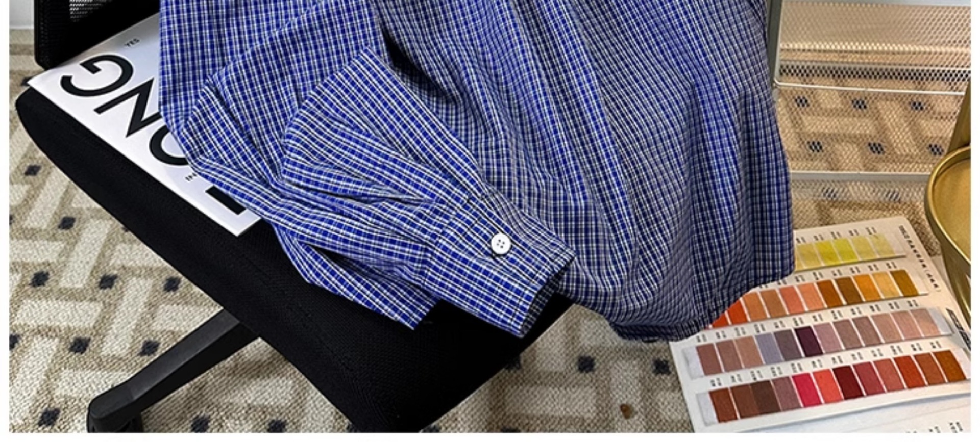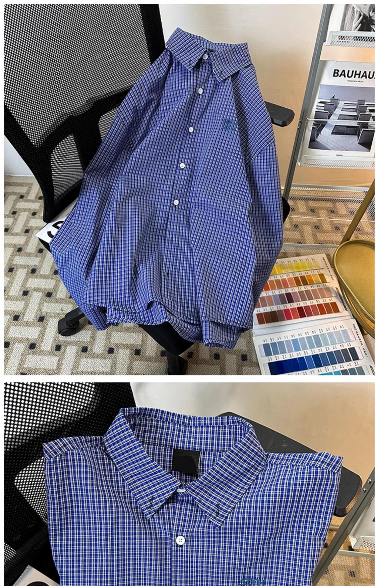 블루 파인 체크 무늬 긴팔 셔츠 남성과 여성을위한 초기 가을 미국 스타일 레트로 루즈 캐주얼 올 매치 커플 셔츠 재킷스토어 가기