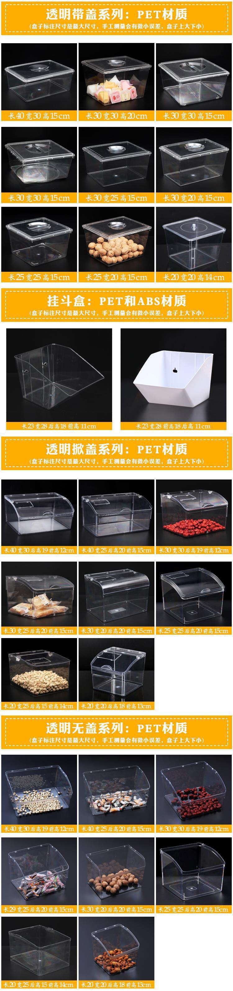 슈퍼마켓 식품 디스플레이 상자 대량 사탕 간식 말린 과일 저장 상자 투명 상업용 선반 디스플레이 상자