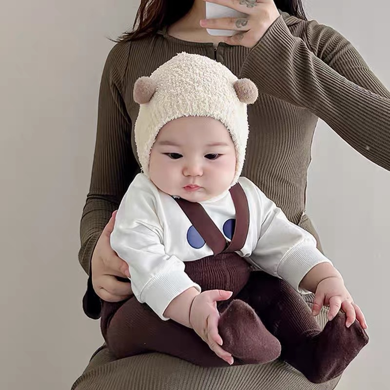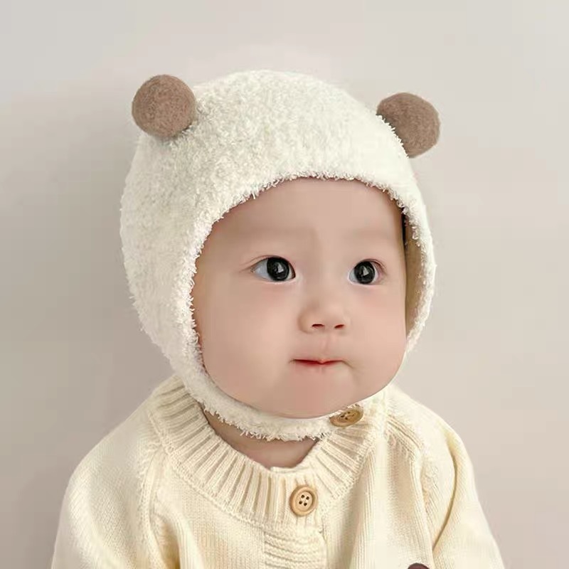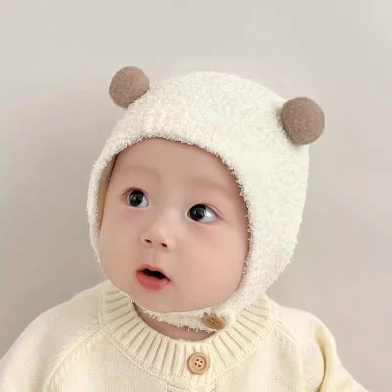 아기 모자 가을과 겨울 신생아 아기 귀 보호 모자 순수한 면 귀여운 따뜻한 니트 양모 벨베이스 아기 소년과 소녀