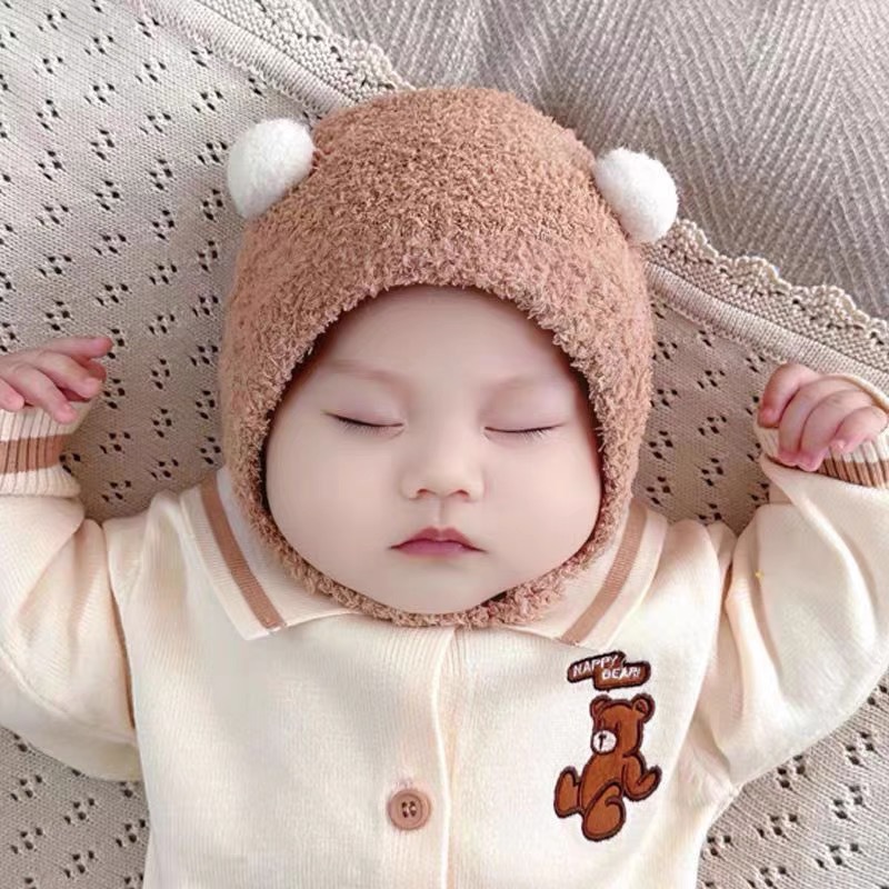 아기 모자 가을과 겨울 신생아 아기 귀 보호 모자 순수한 면 귀여운 따뜻한 니트 양모 벨베이스 아기 소년과 소녀스토어 가기