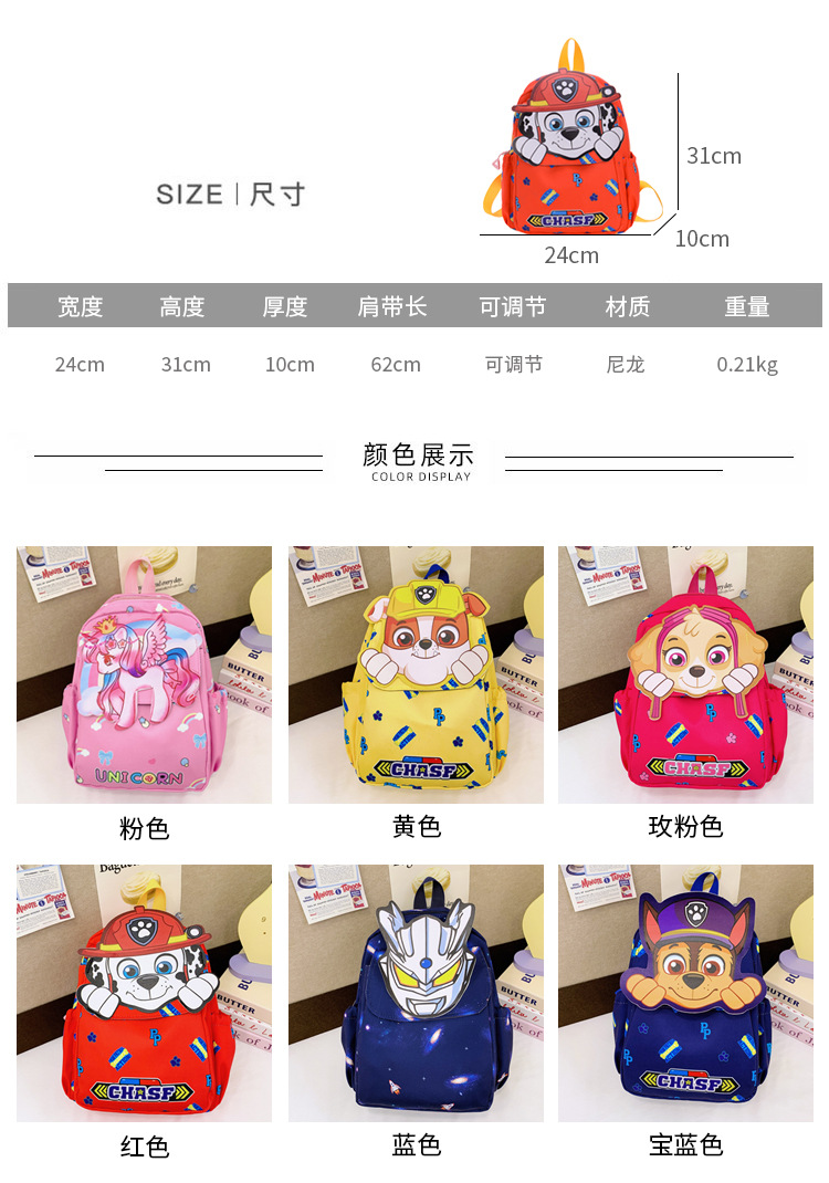 유치원 스쿨 백 왕 왕 팀 귀여운 만화 어린이 가방 소년과 소녀 새로운 경량 강아지 배낭 국경스토어 가기