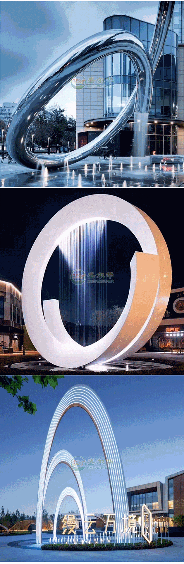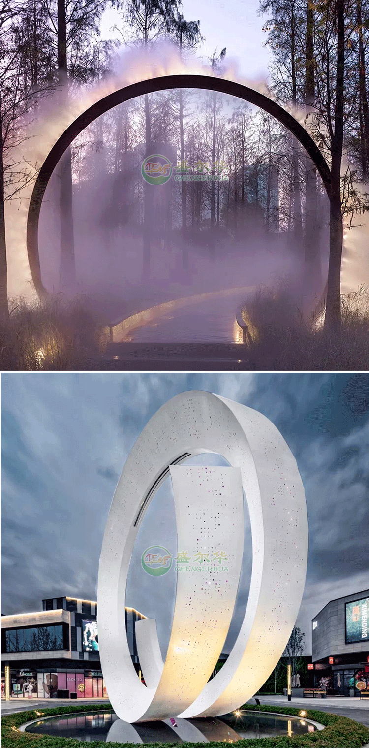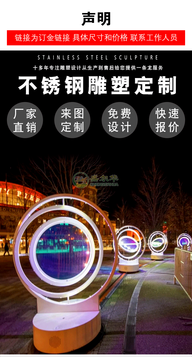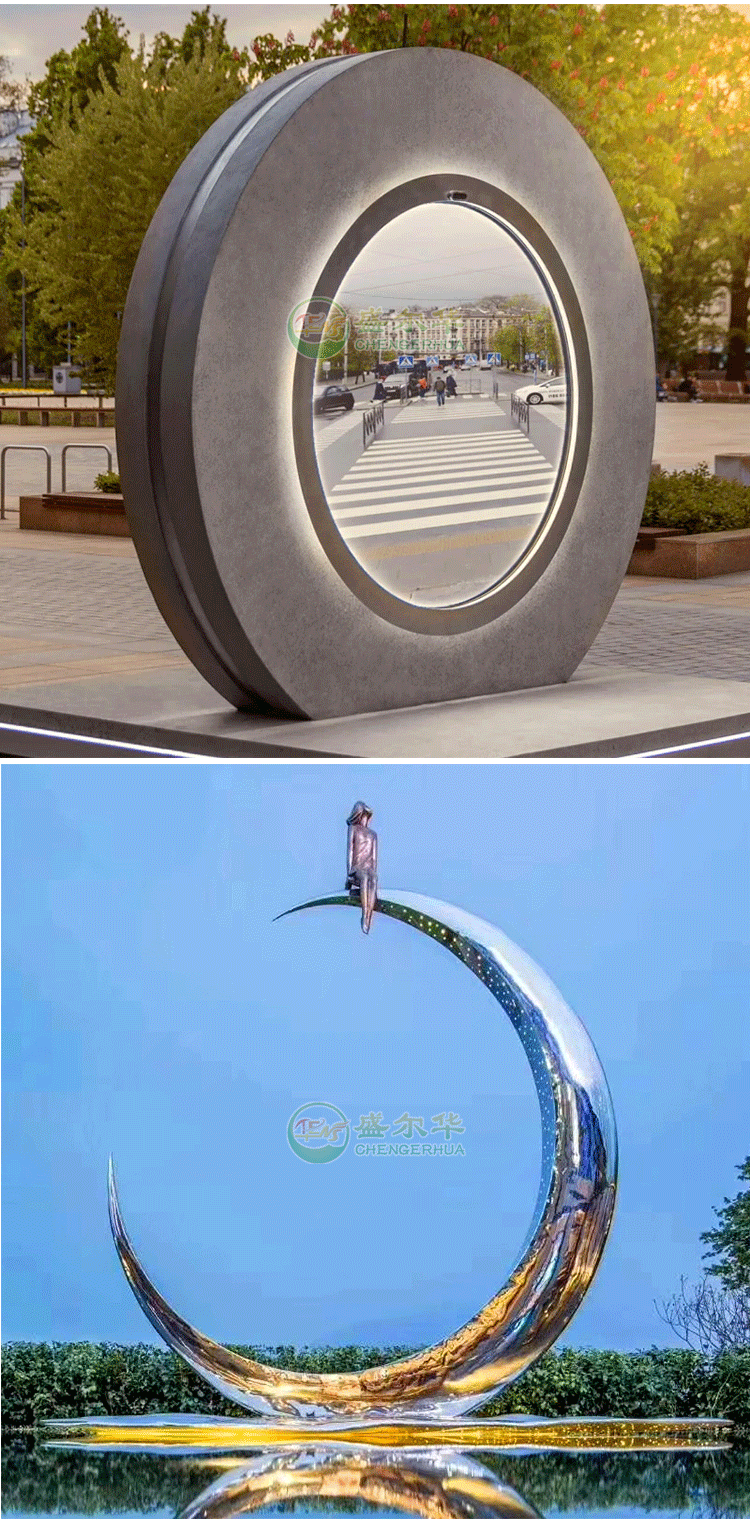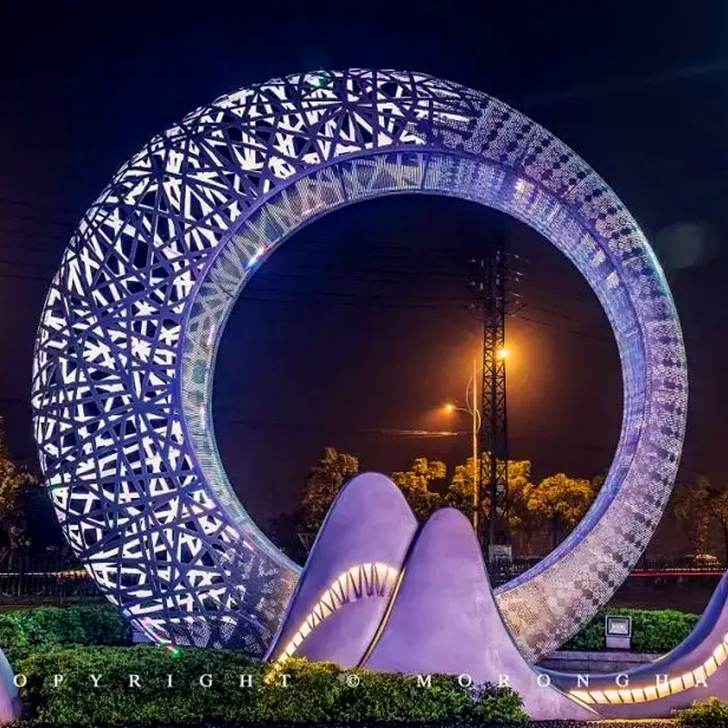 대형 스테인레스 스틸 링 조각 야외 빛나는 달 판매 부서 커뮤니티 정원 풍경 장식 장식품 조각