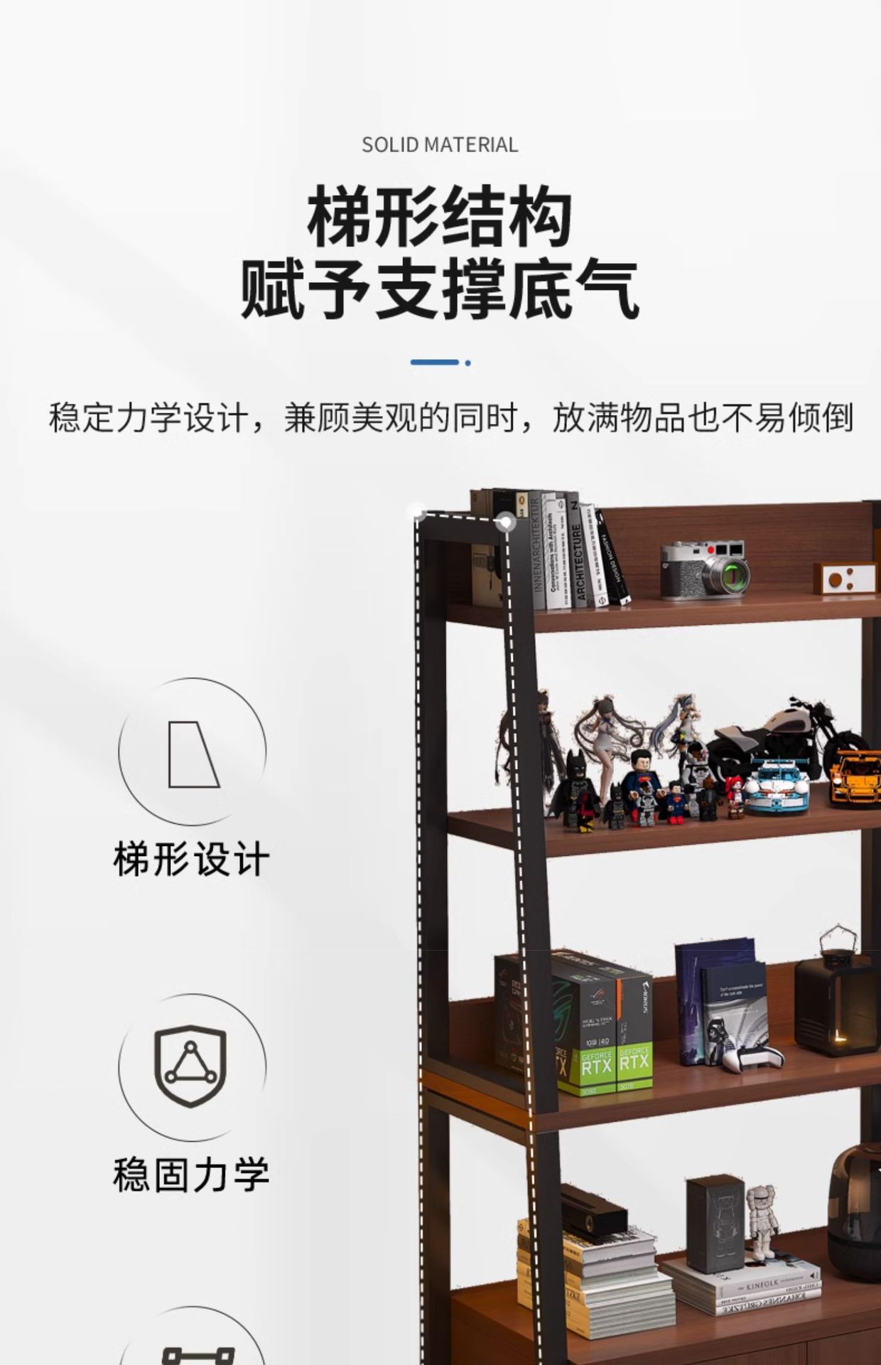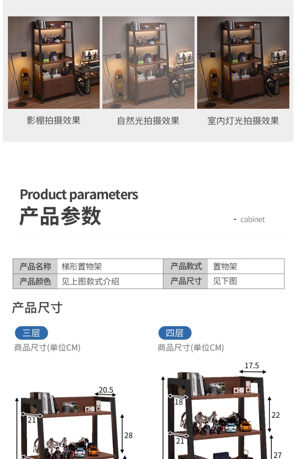 置物架落地收纳架多层书架电竞房电脑桌旁储物柜铁艺梯形展示架子