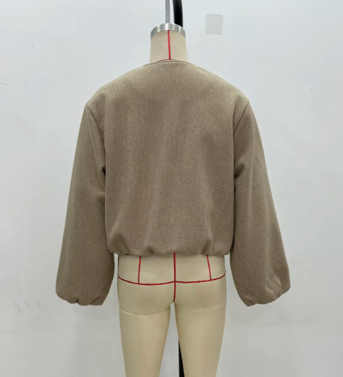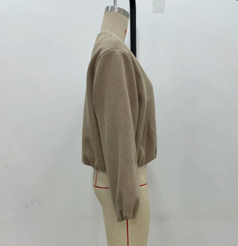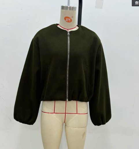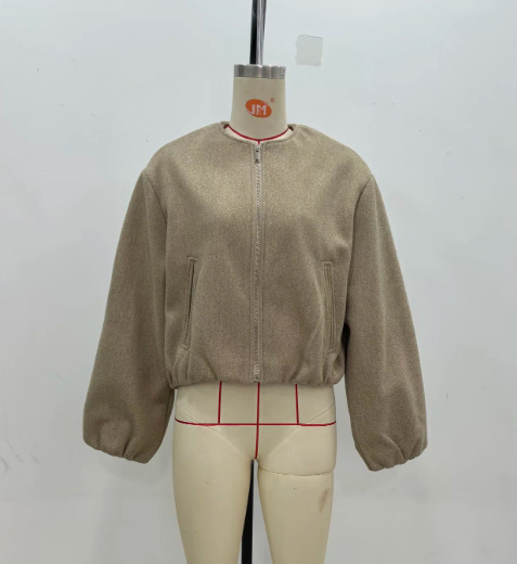 AliExpress 국경 대외 무역 유럽과 미국 의류 ZA 가을, 겨울 새로운 라운드 넥 부드러운 짧은 폭격기 재킷