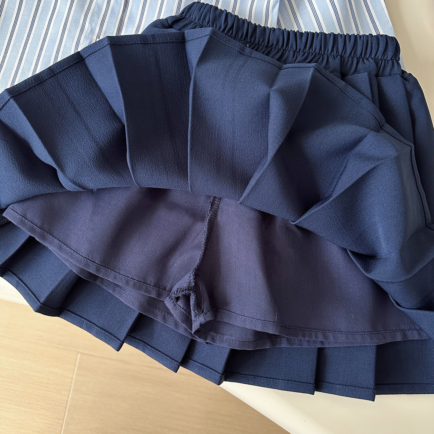 2025년 가을 신상 한국 스타일 여아 니트 조끼 스트라이프 셔츠 컬리지 스타일 플리츠 스커트 3종 세트 도매스토어 가기