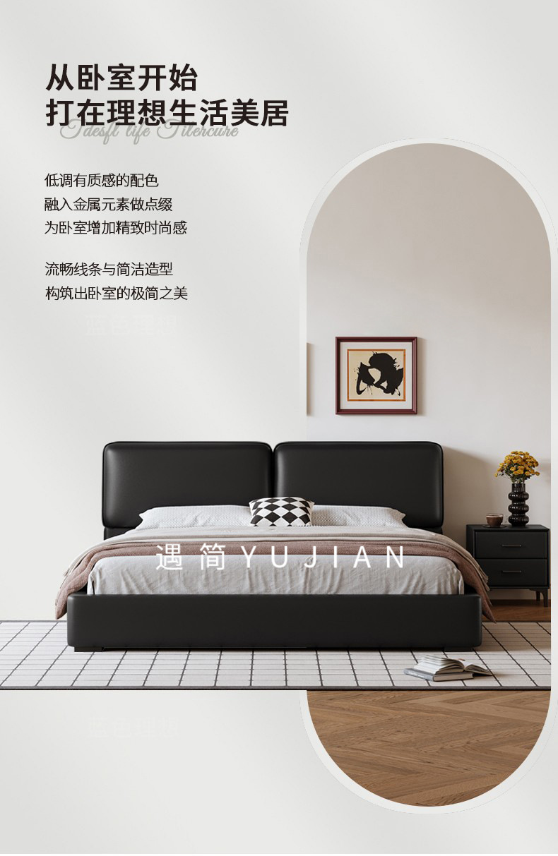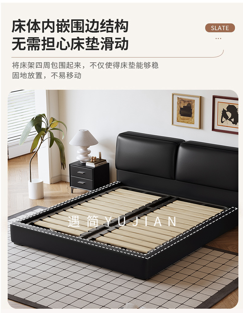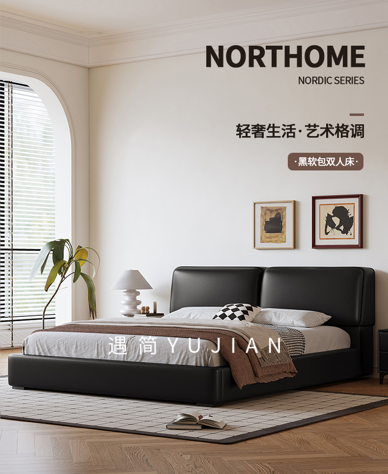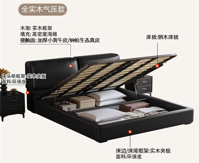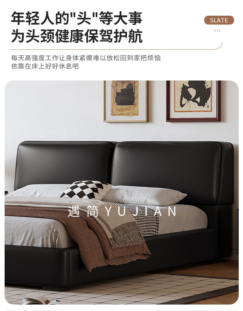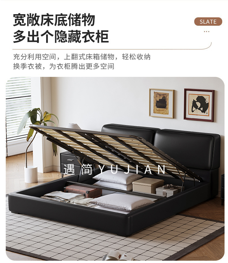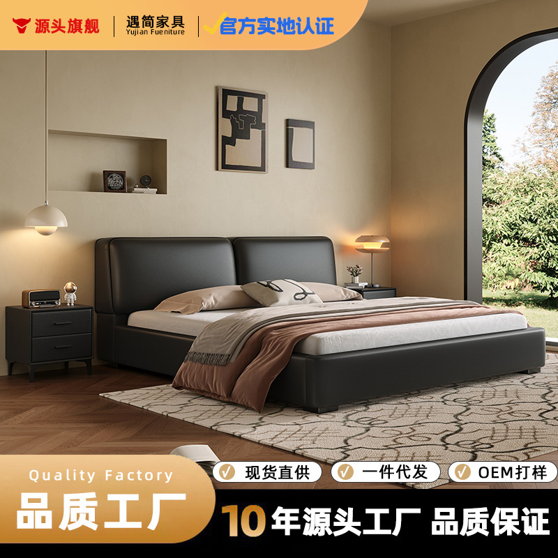 공장 직접 큰 검은 암소 가죽 침대 작은 노란색 소 가죽 간단한 하이 엔드 작은 아파트 마스터 침실 보관 부드러운 가방 더블 침대