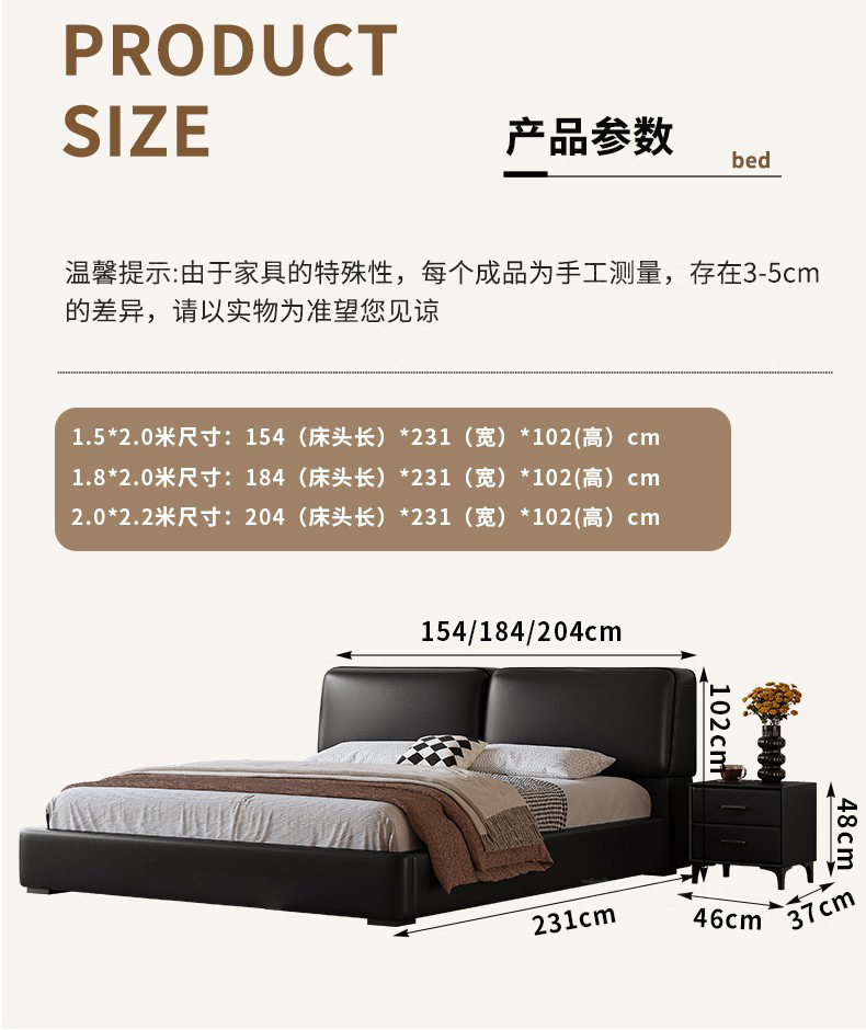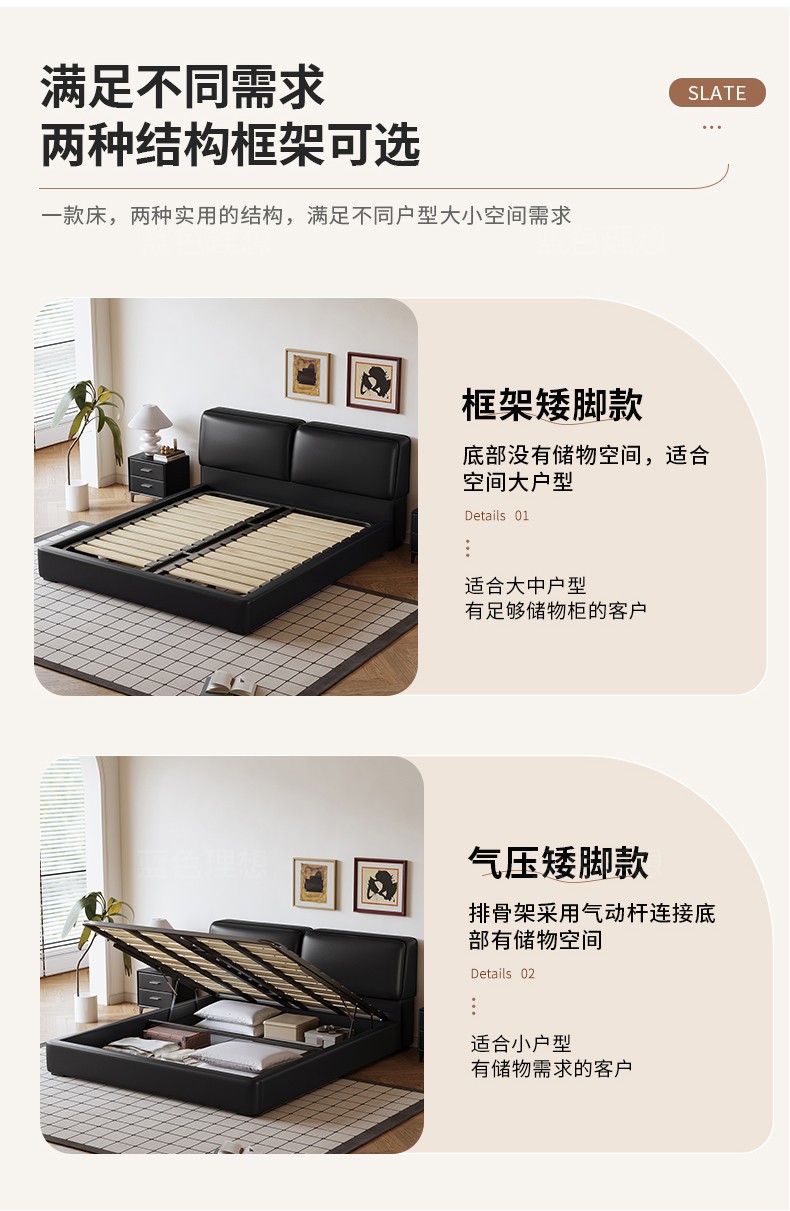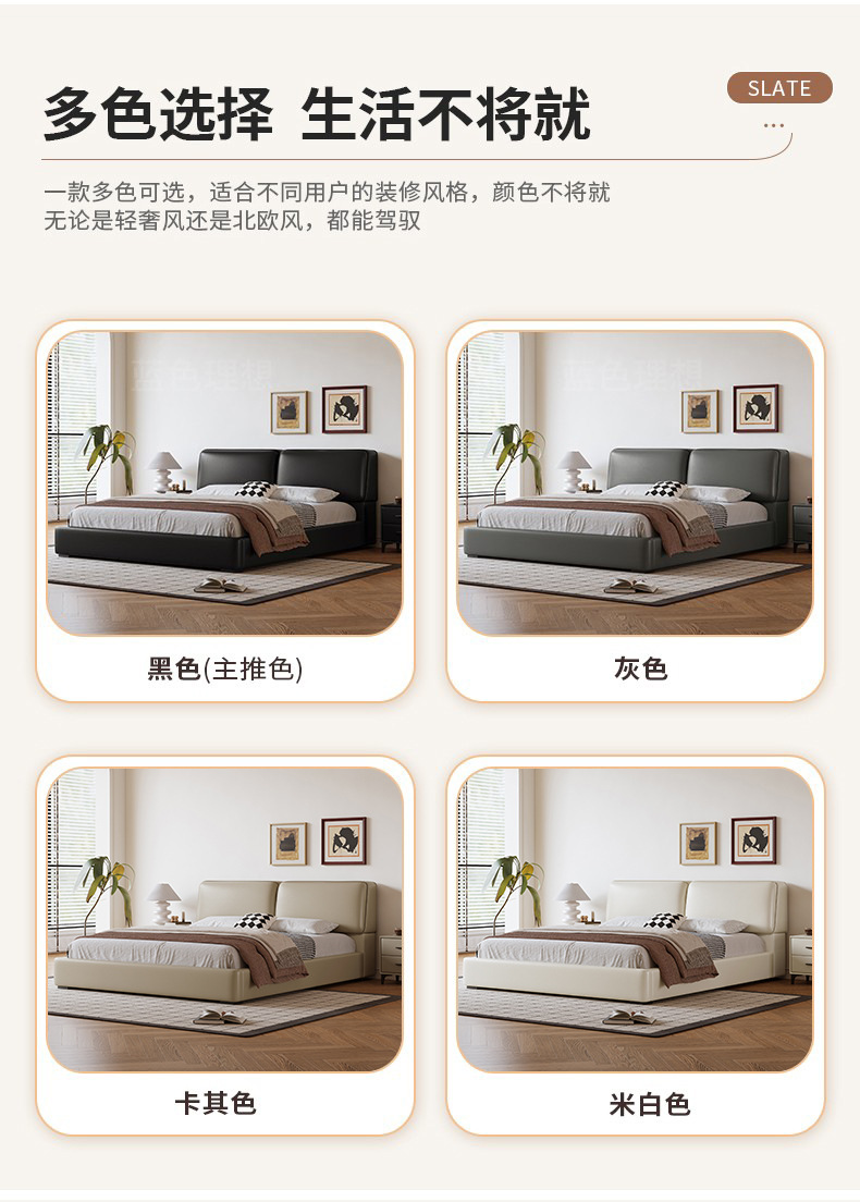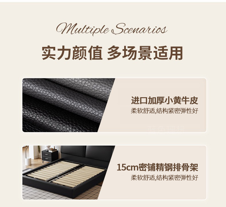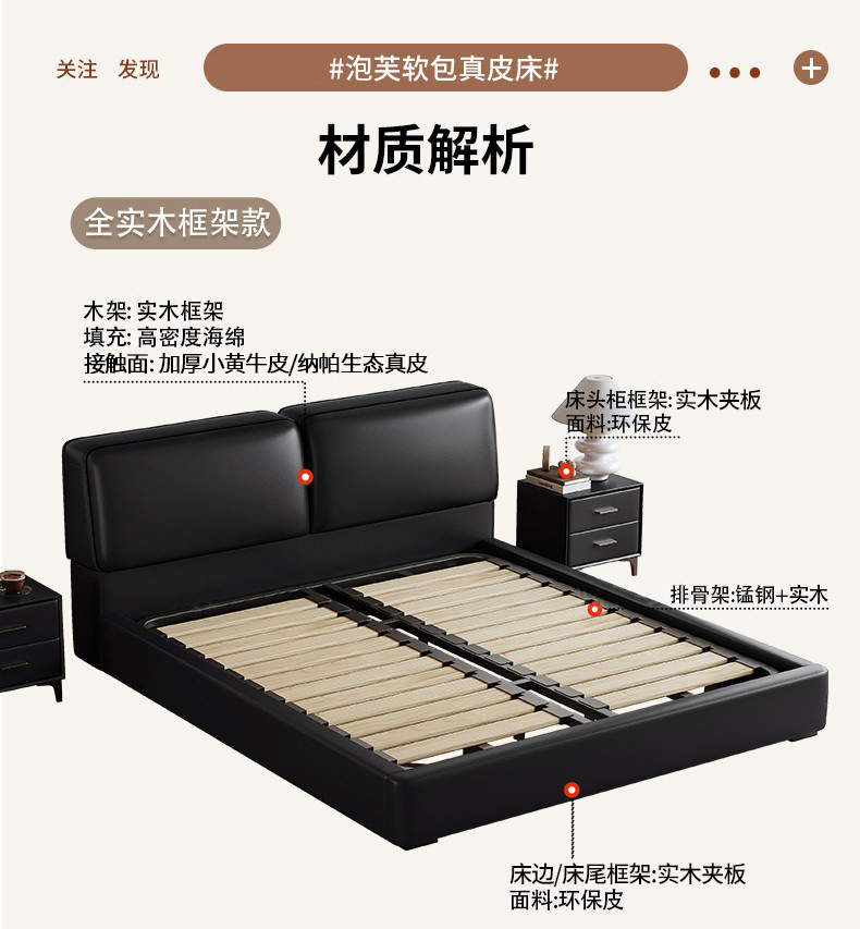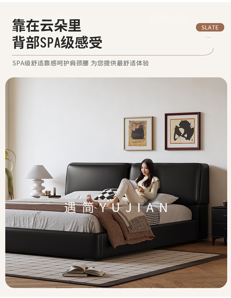 공장 직접 큰 검은 암소 가죽 침대 작은 노란색 소 가죽 간단한 하이 엔드 작은 아파트 마스터 침실 보관 부드러운 가방 더블 침대