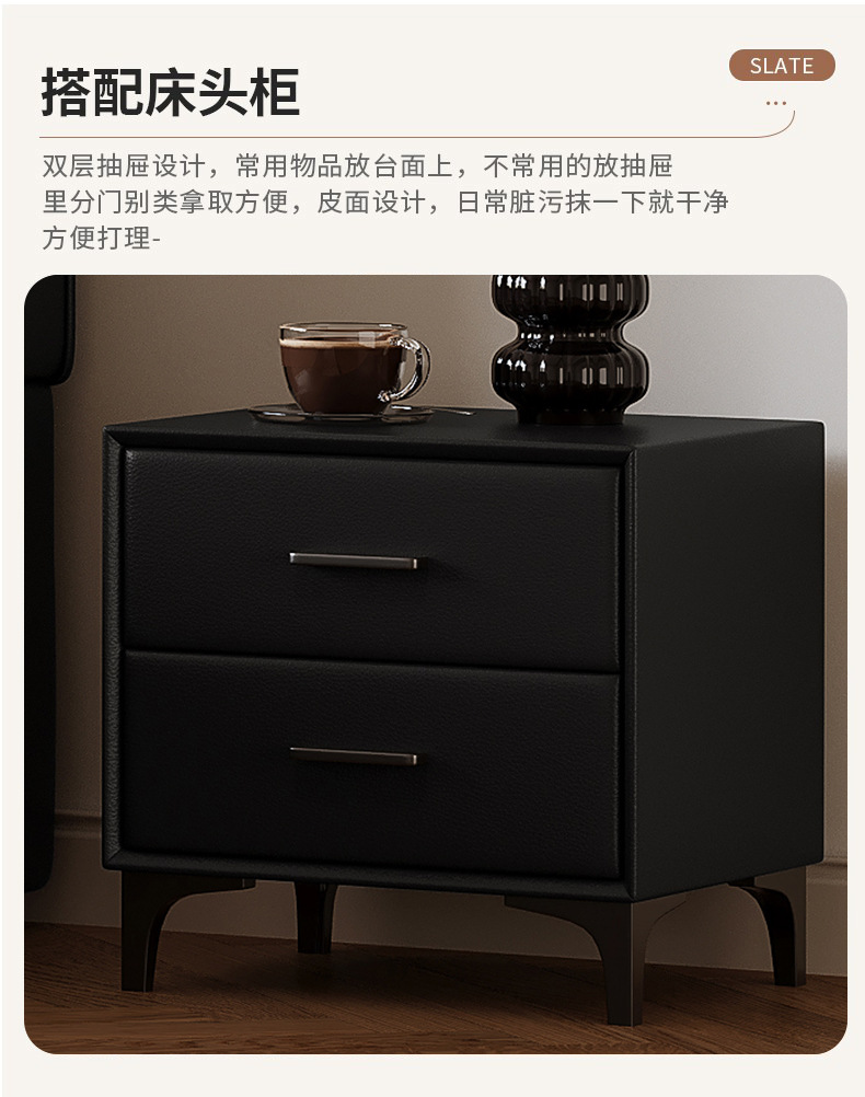 • [컴포트 에디션 | 나파 에코 가죽 + 15cm 촘촘하게 펼쳐진 스틸 프레임] 싱글 침대 + 캐비닛 2개