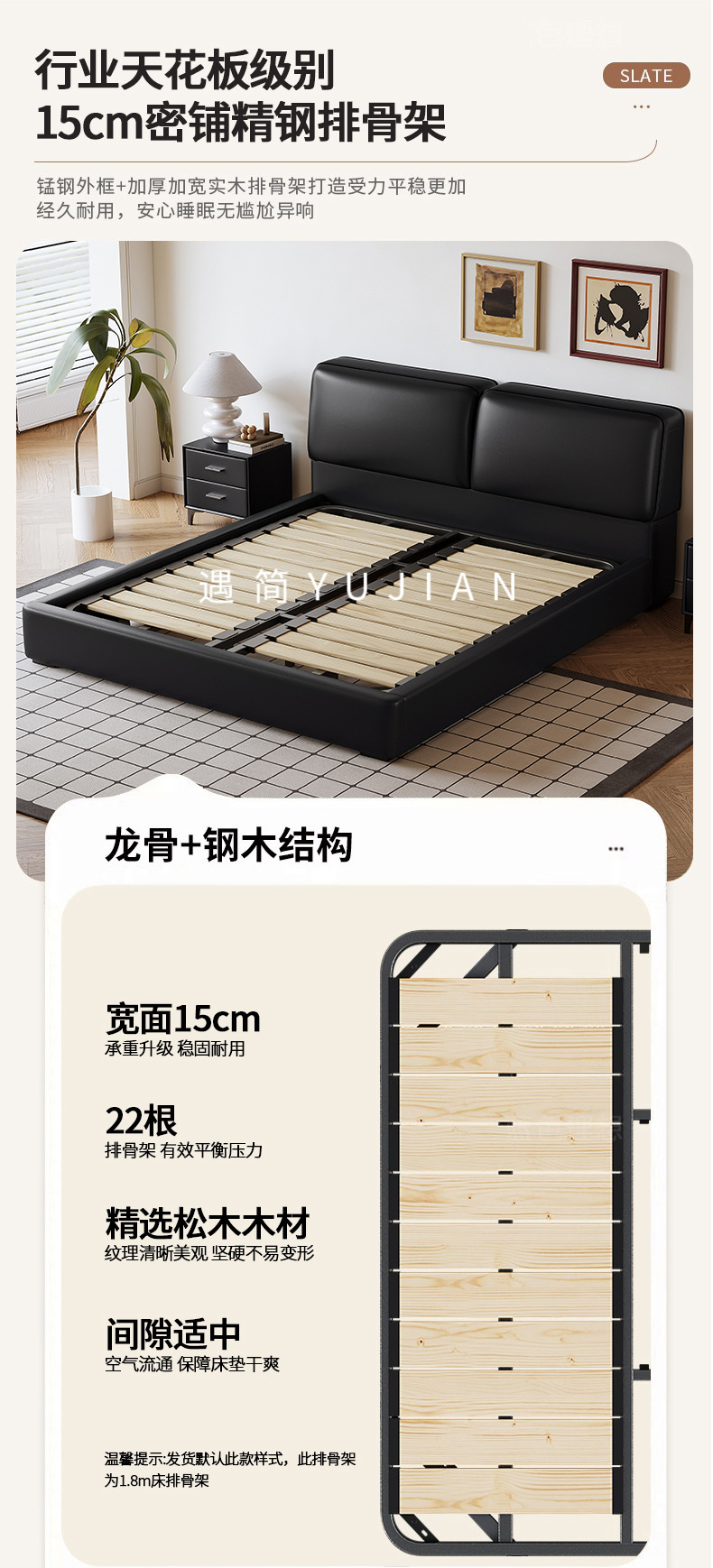 • [디럭스 에디션 | 수입 두꺼운 작은 노란색 소가죽 + 15cm 촘촘하게 포장된 스틸 프레임] 싱글 침대