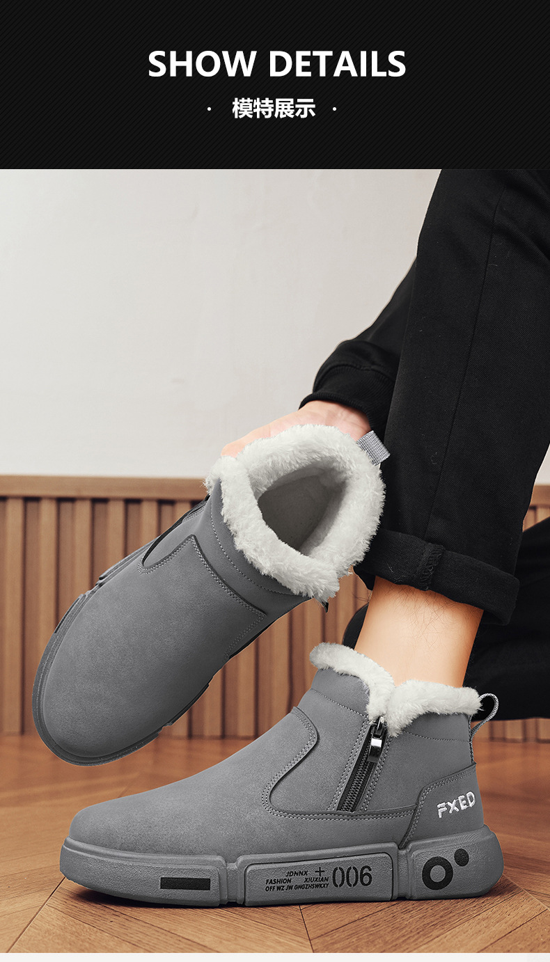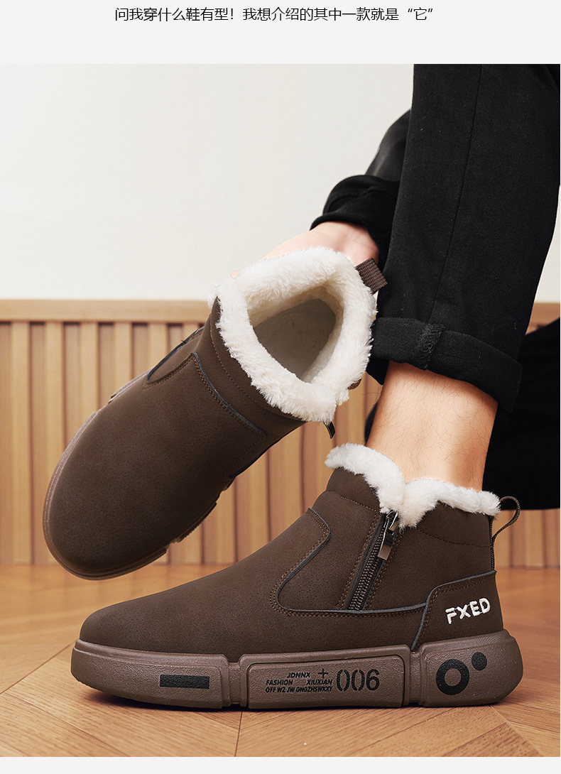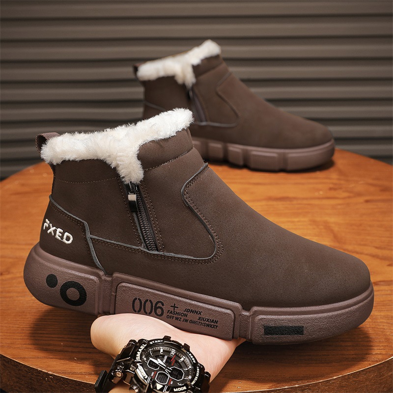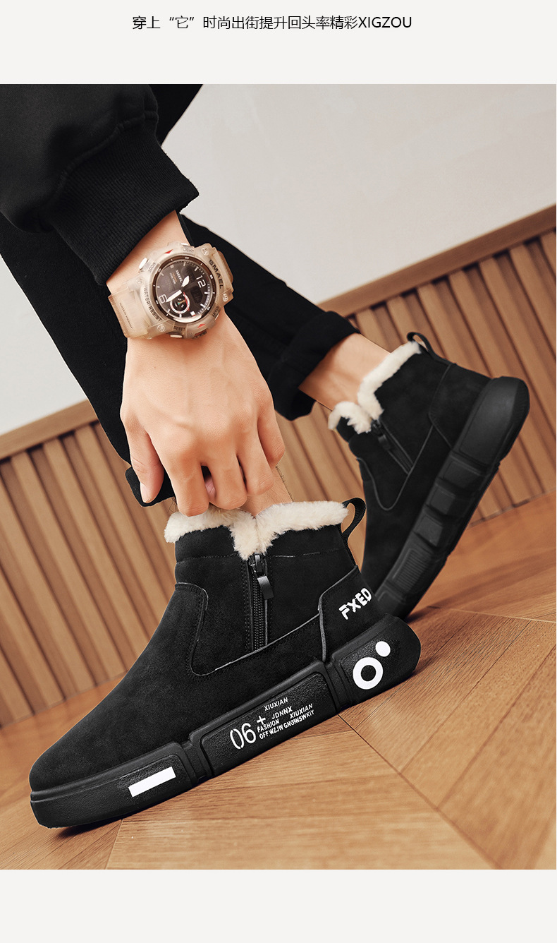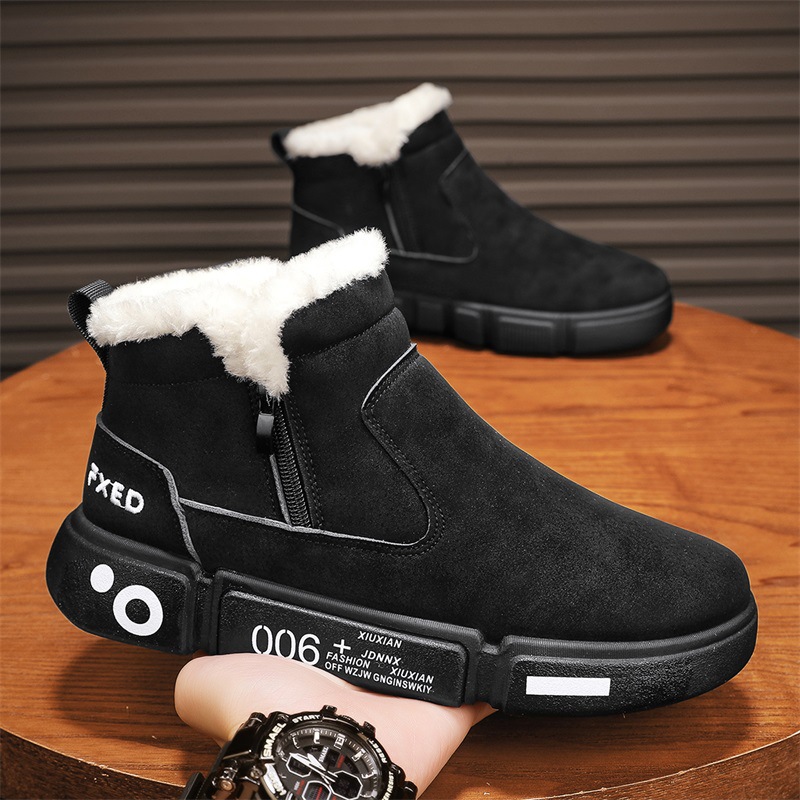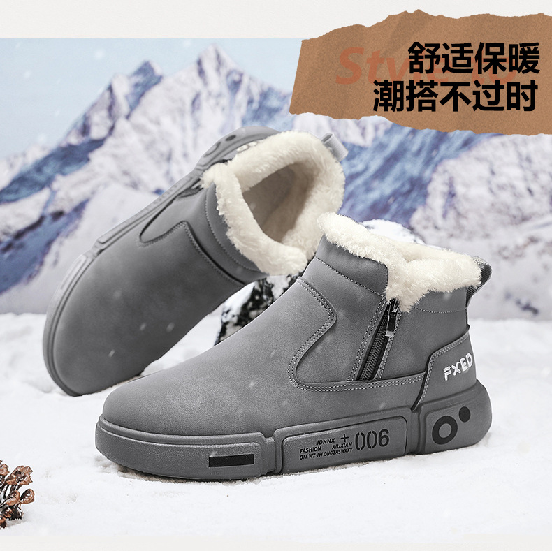 스노우 부츠 남성용 신발 겨울 새로운 미드 탑 코튼 슈즈 야외 따뜻한 기모 두꺼운 슬립 온 코튼 슈즈 냉방비 슬립