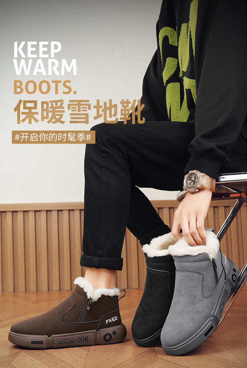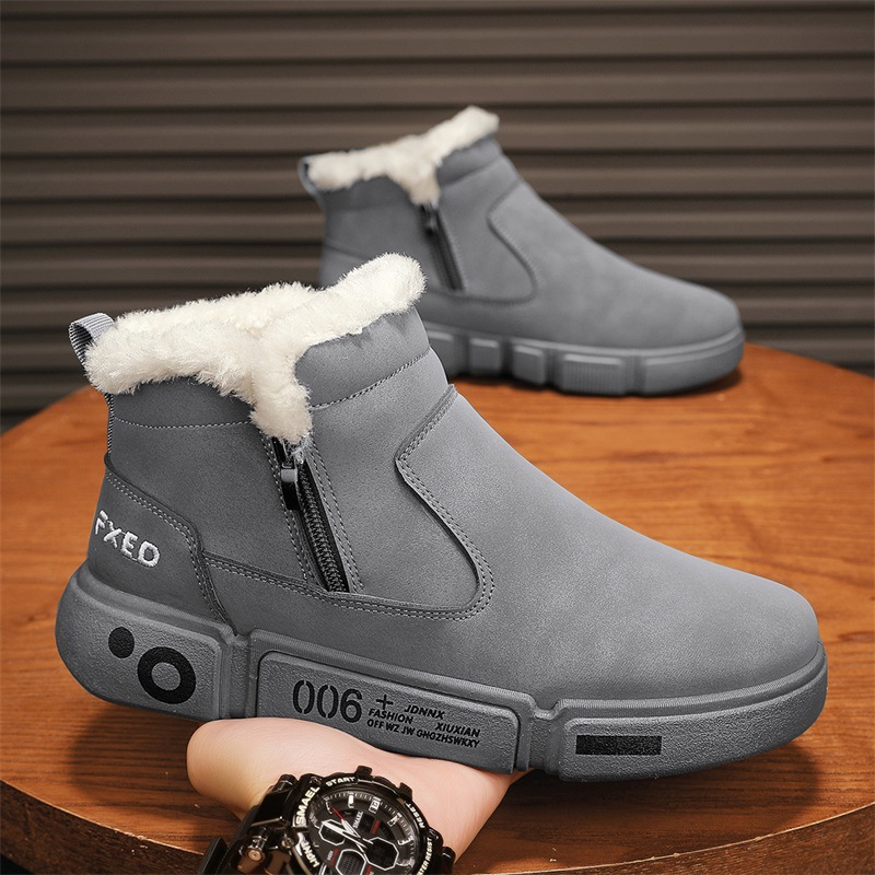 스노우 부츠 남성용 신발 겨울 새로운 미드 탑 코튼 슈즈 야외 따뜻한 기모 두꺼운 슬립 온 코튼 슈즈 냉방비 슬립스토어 가기