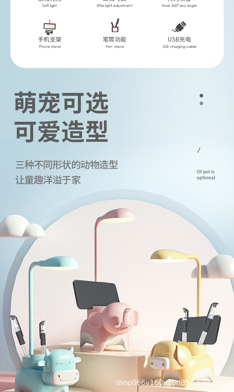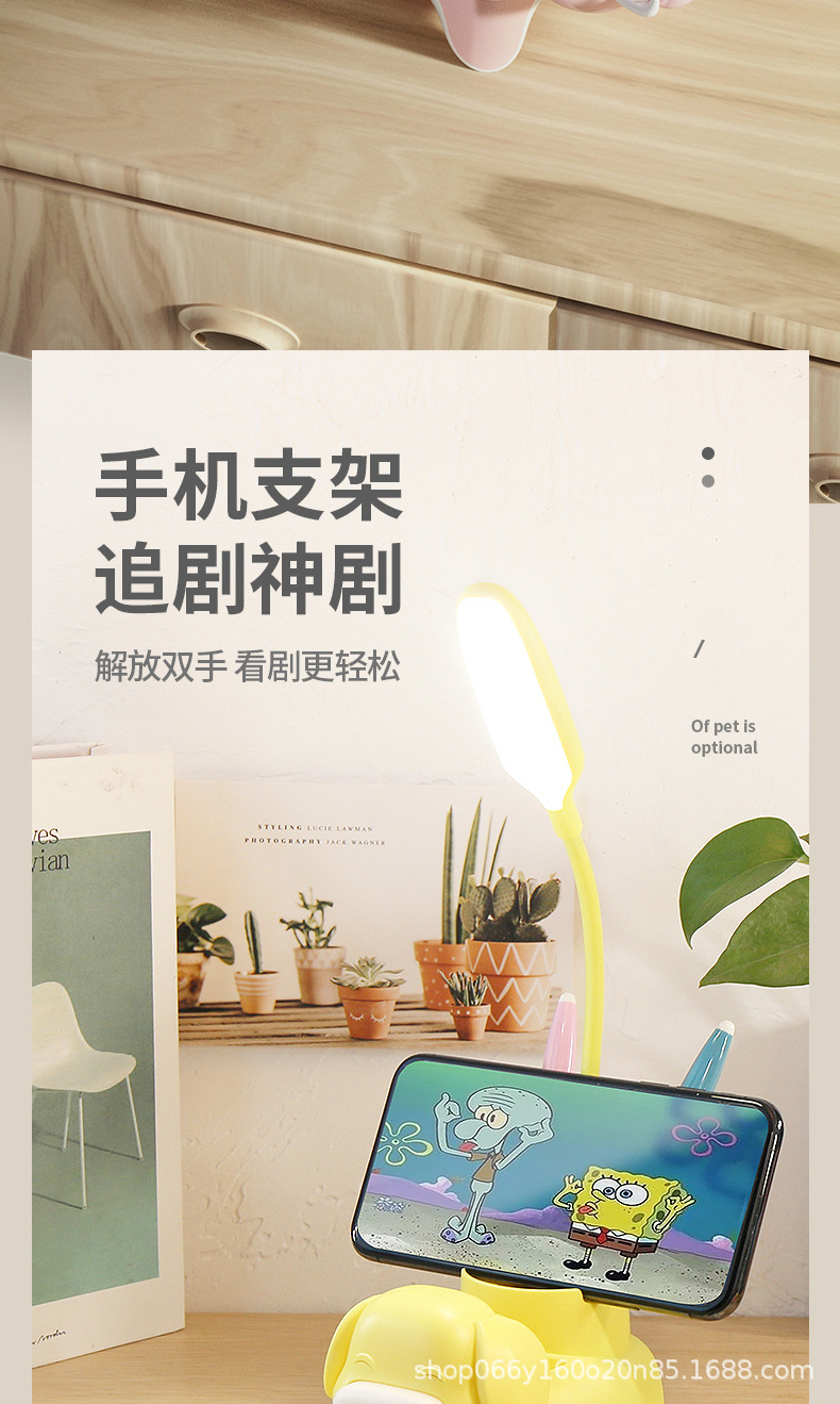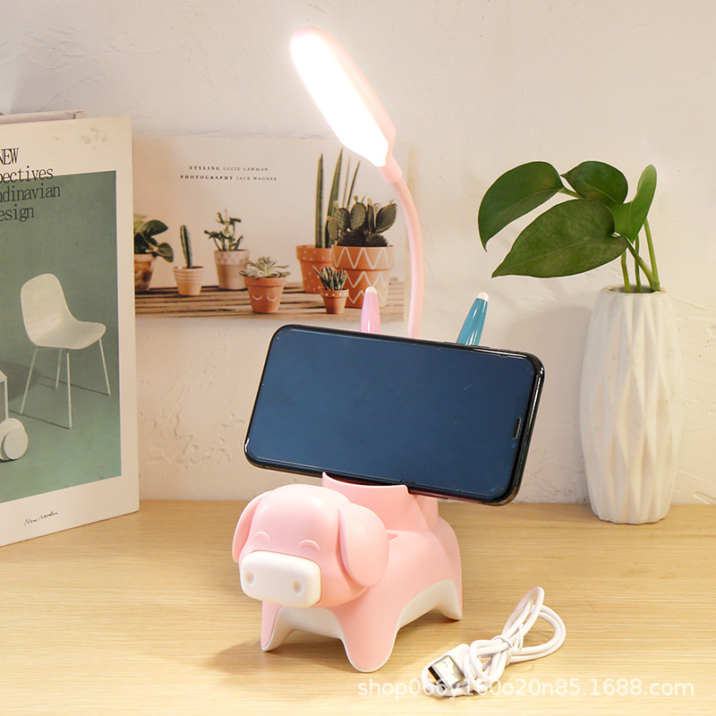만화 창조적 인 펜 홀더 책상 램프 USB 충전식 어린이 학습 책상 독서 램프 선물 작은 가전스토어 가기
