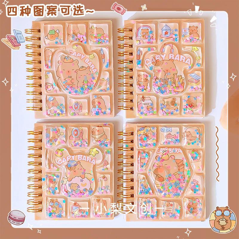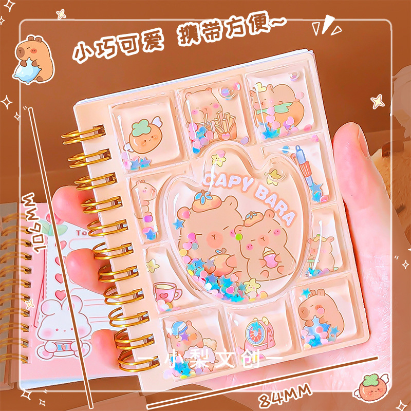 초등학생을위한 카피 바라 쉐이크 샌드 코일 패드 컬러 페이지 메모장 만화 귀여운 휴대용 포켓 노트북스토어 가기