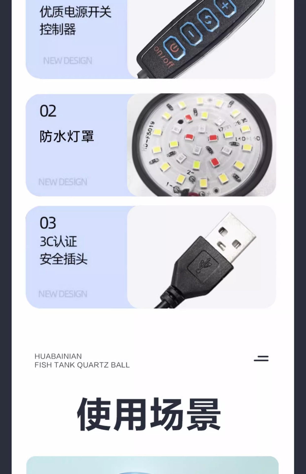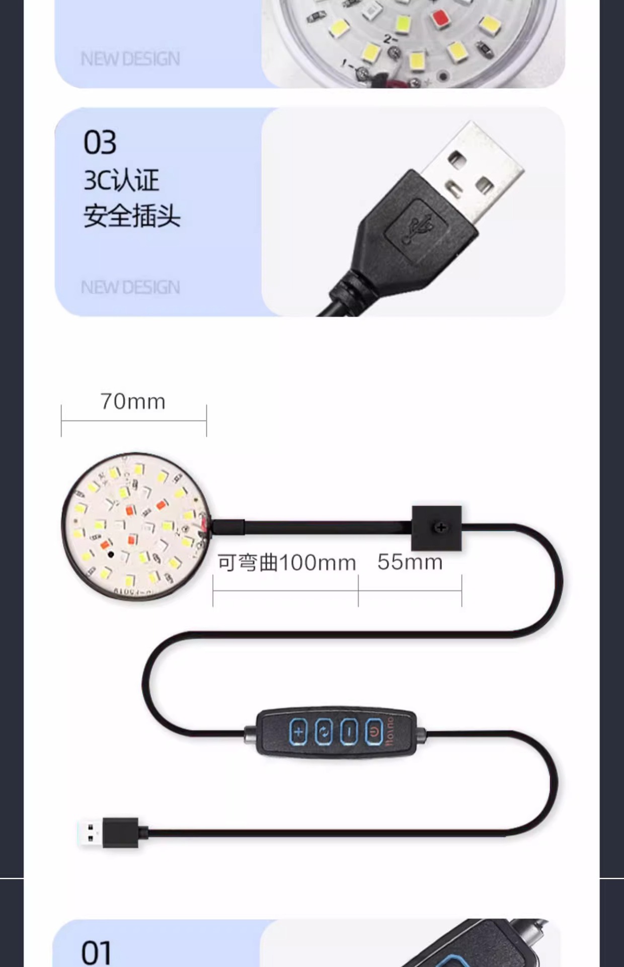 • 세 가지 색상 + 10단계 밝기 조절 가능丨 파란색과 흰색 램프 비드 + 플러그