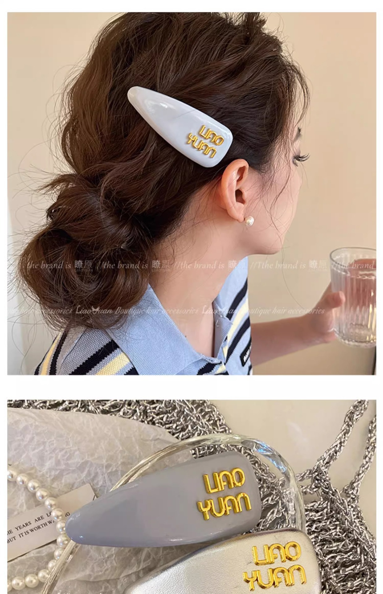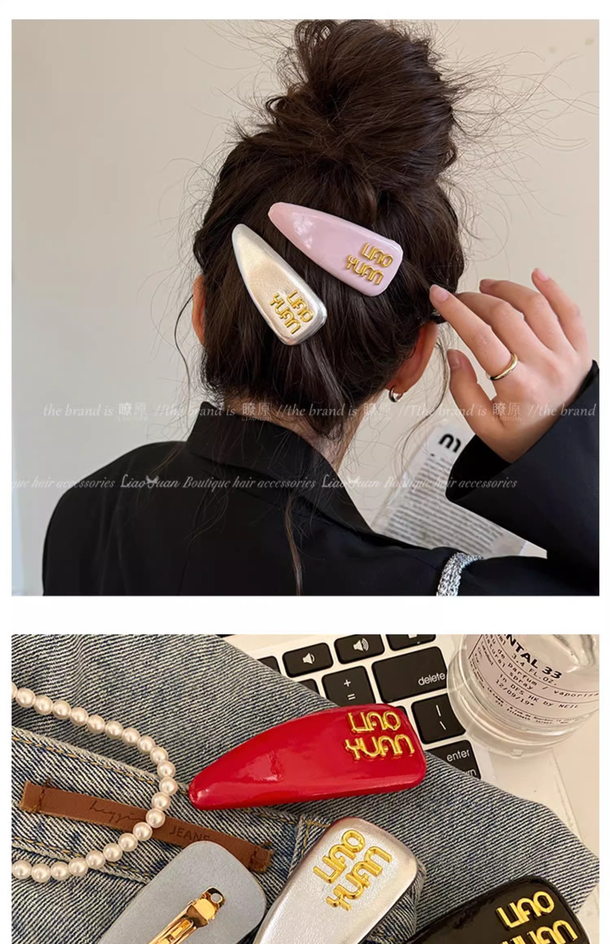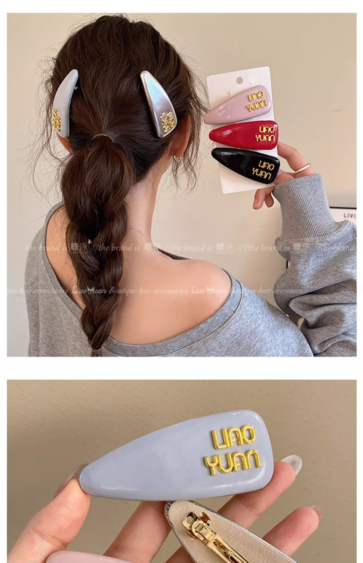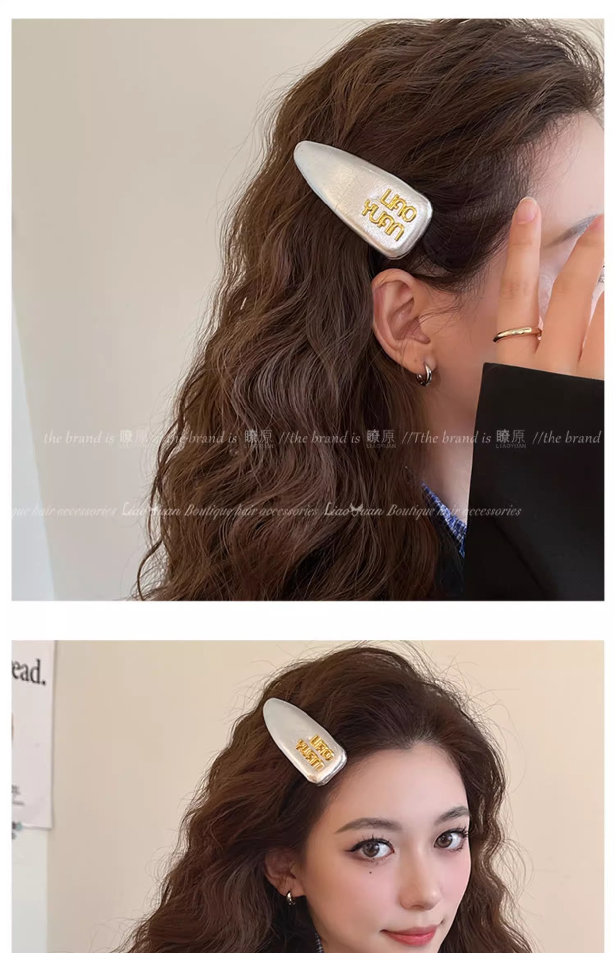 한국 기질 편지 앞머리 머리핀 머리 장식 여성의 새로운 하이 엔드 스프링 클립 간단한 핀 핀 도매스토어 가기