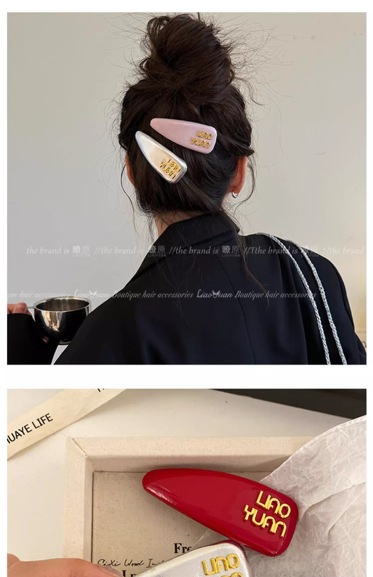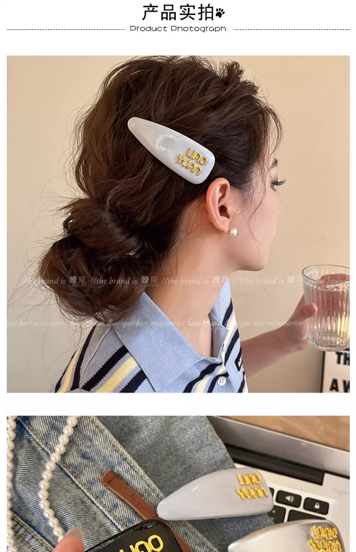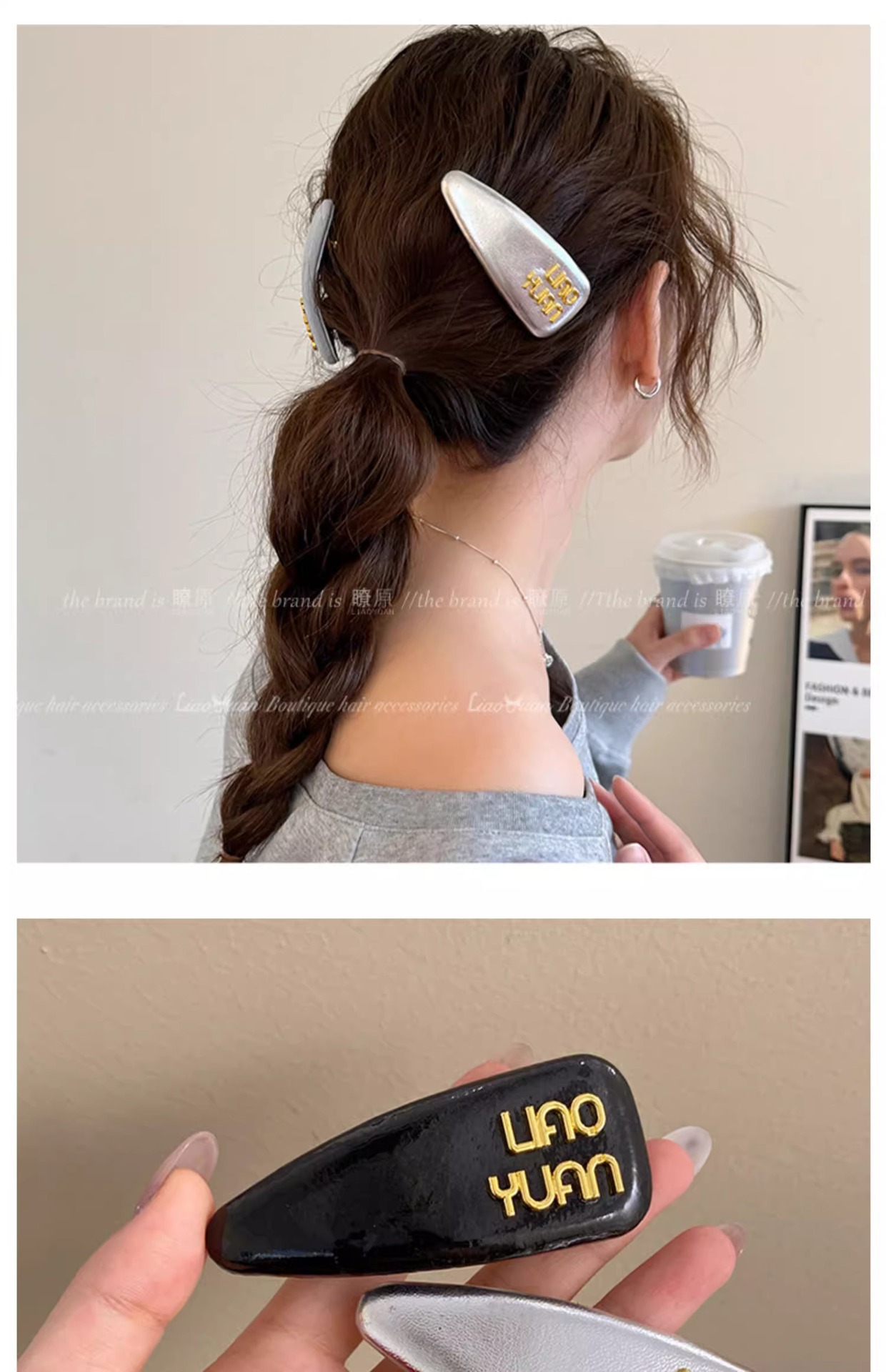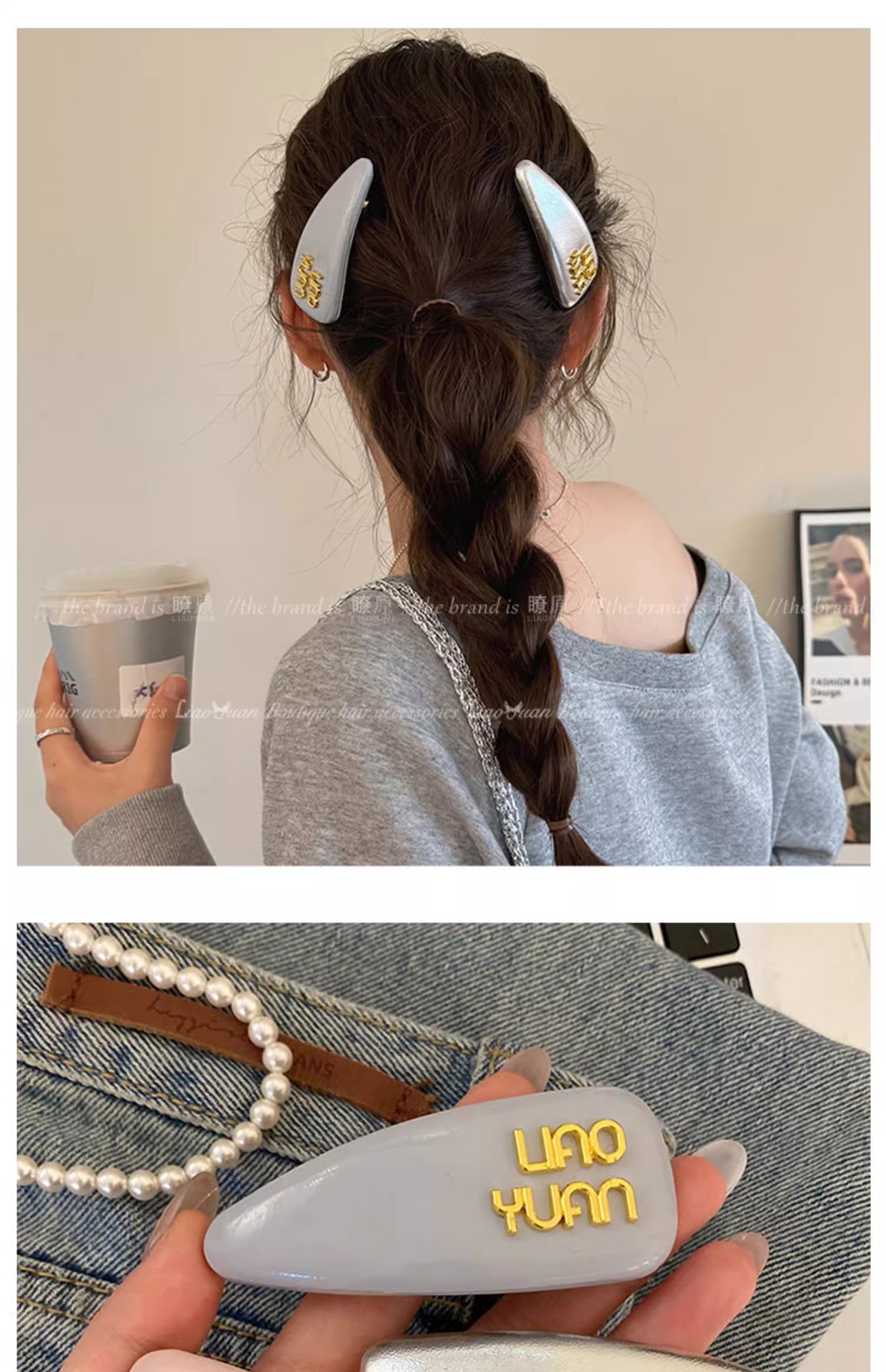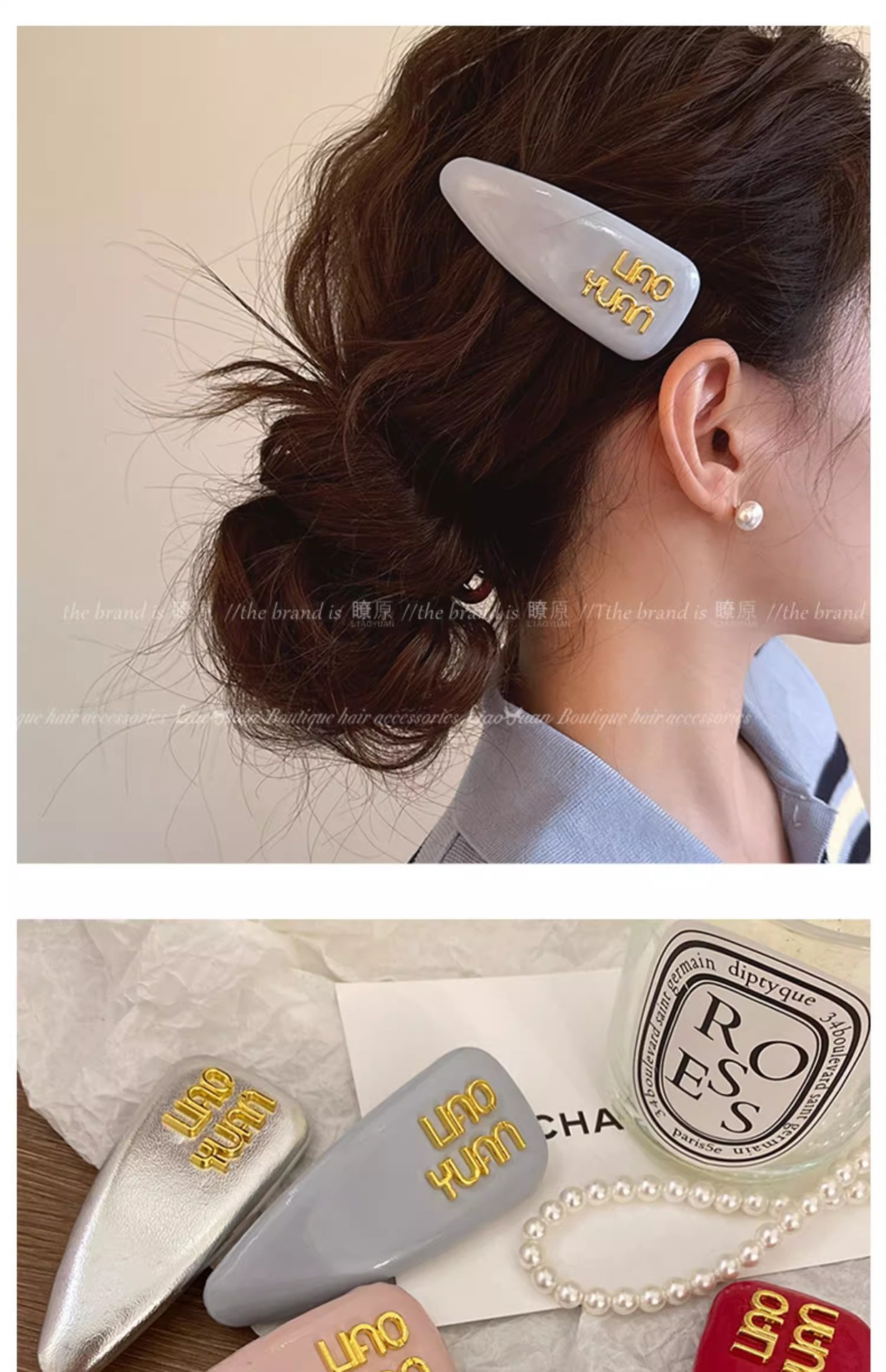 한국 기질 편지 앞머리 머리핀 머리 장식 여성의 새로운 하이 엔드 스프링 클립 간단한 핀 핀 도매스토어 가기