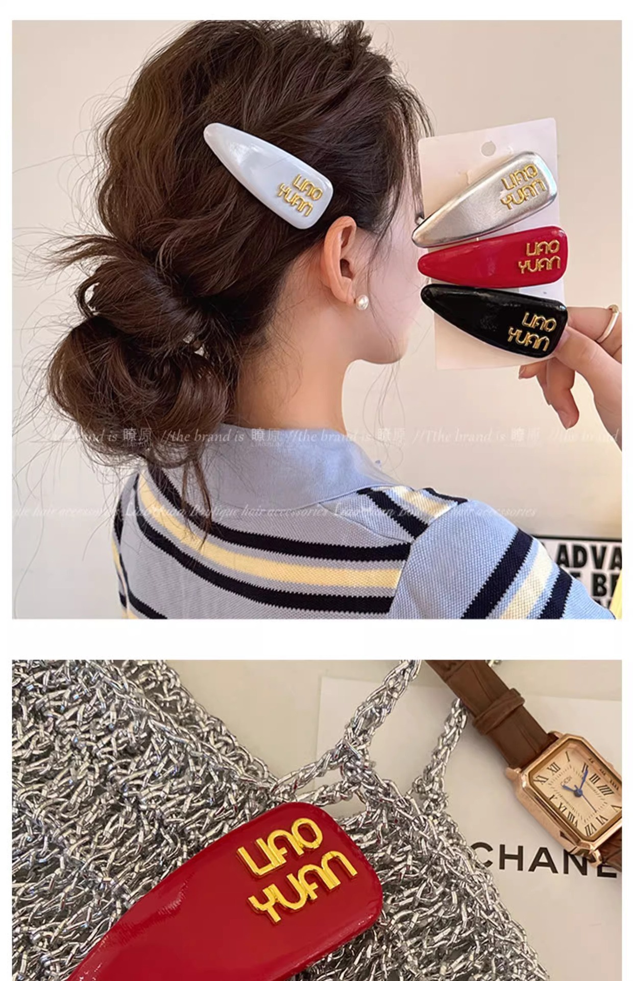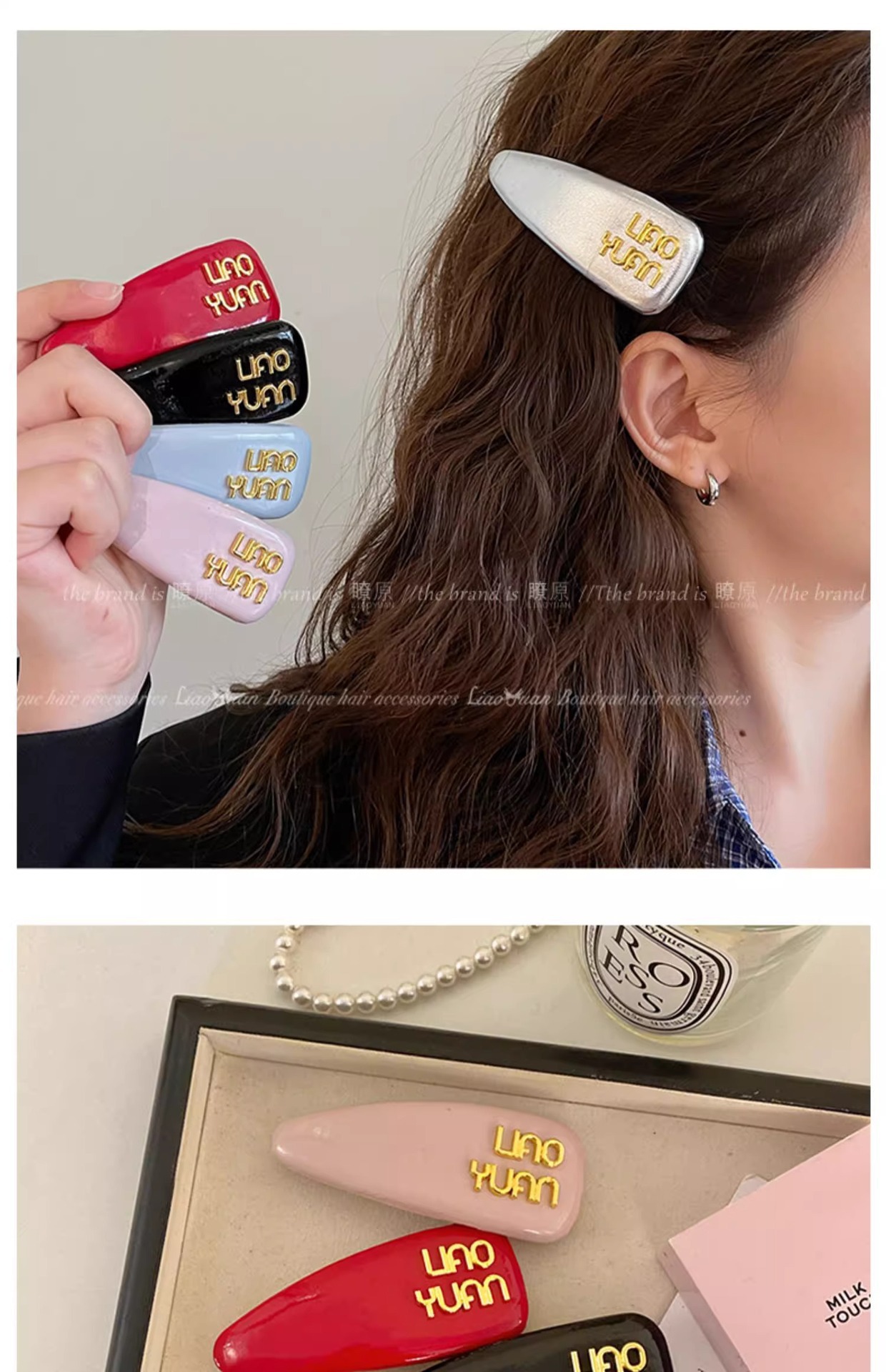 한국 기질 편지 앞머리 머리핀 머리 장식 여성의 새로운 하이 엔드 스프링 클립 간단한 핀 핀 도매