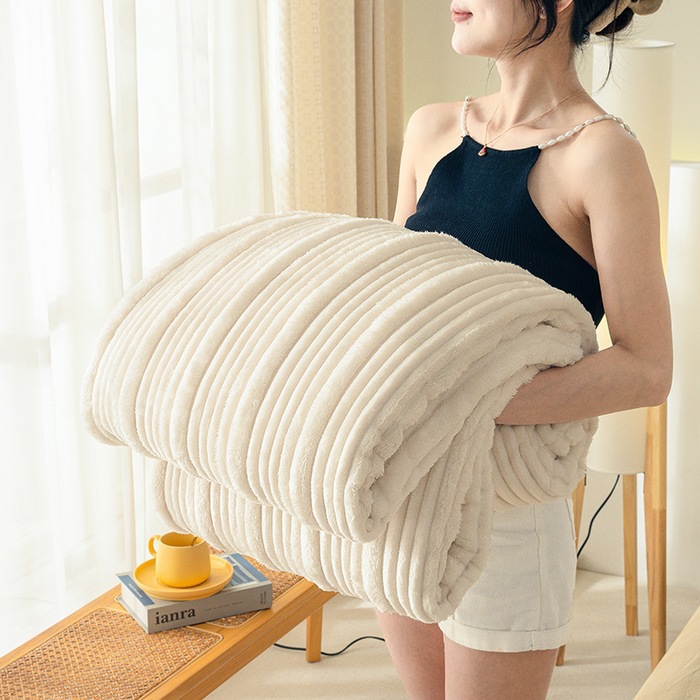우유 양털 담요 어머니와 어머니 줄무늬 자카드 낮잠 담요 솔리드 컬러 기계 세탁기 코랄 양털 담요스토어 가기