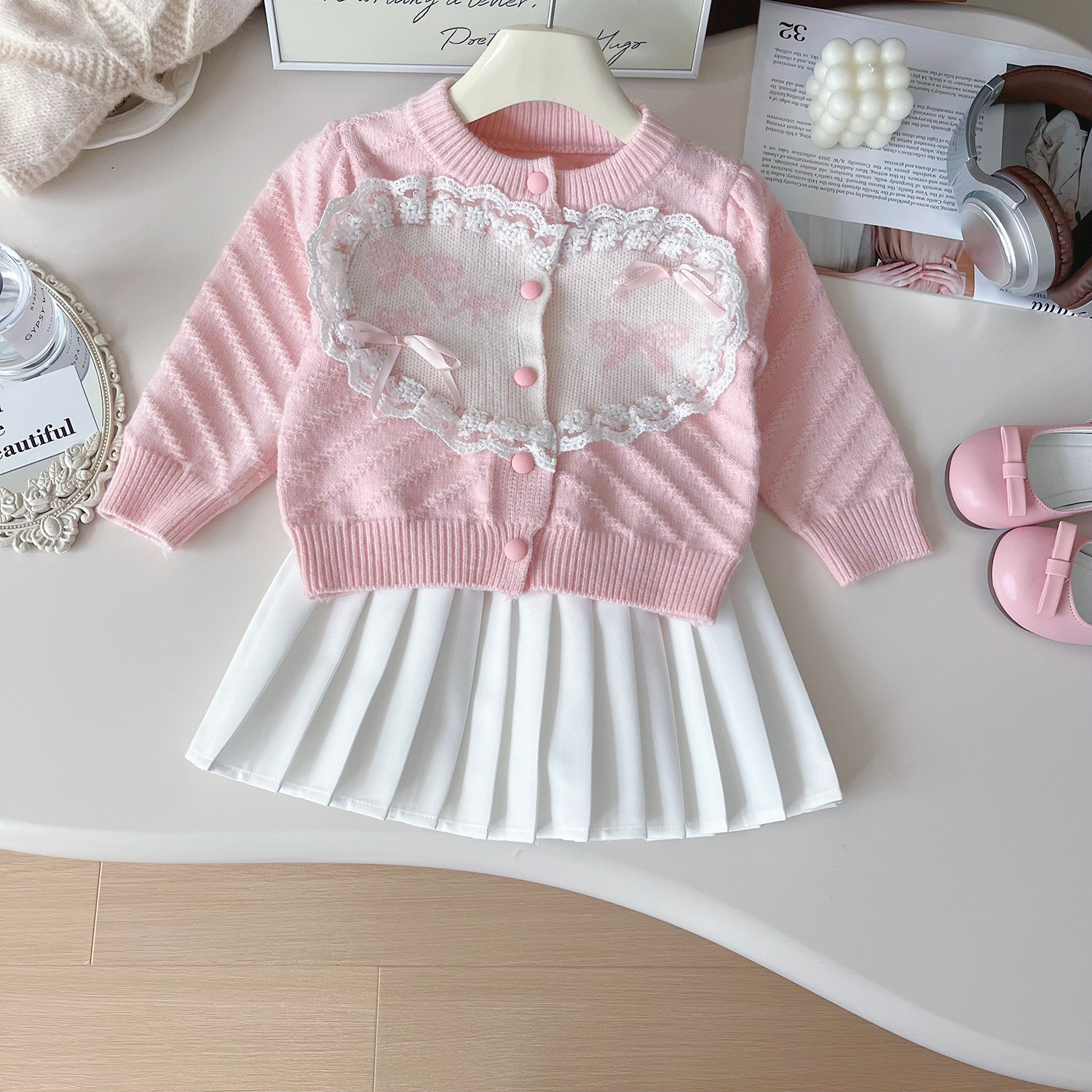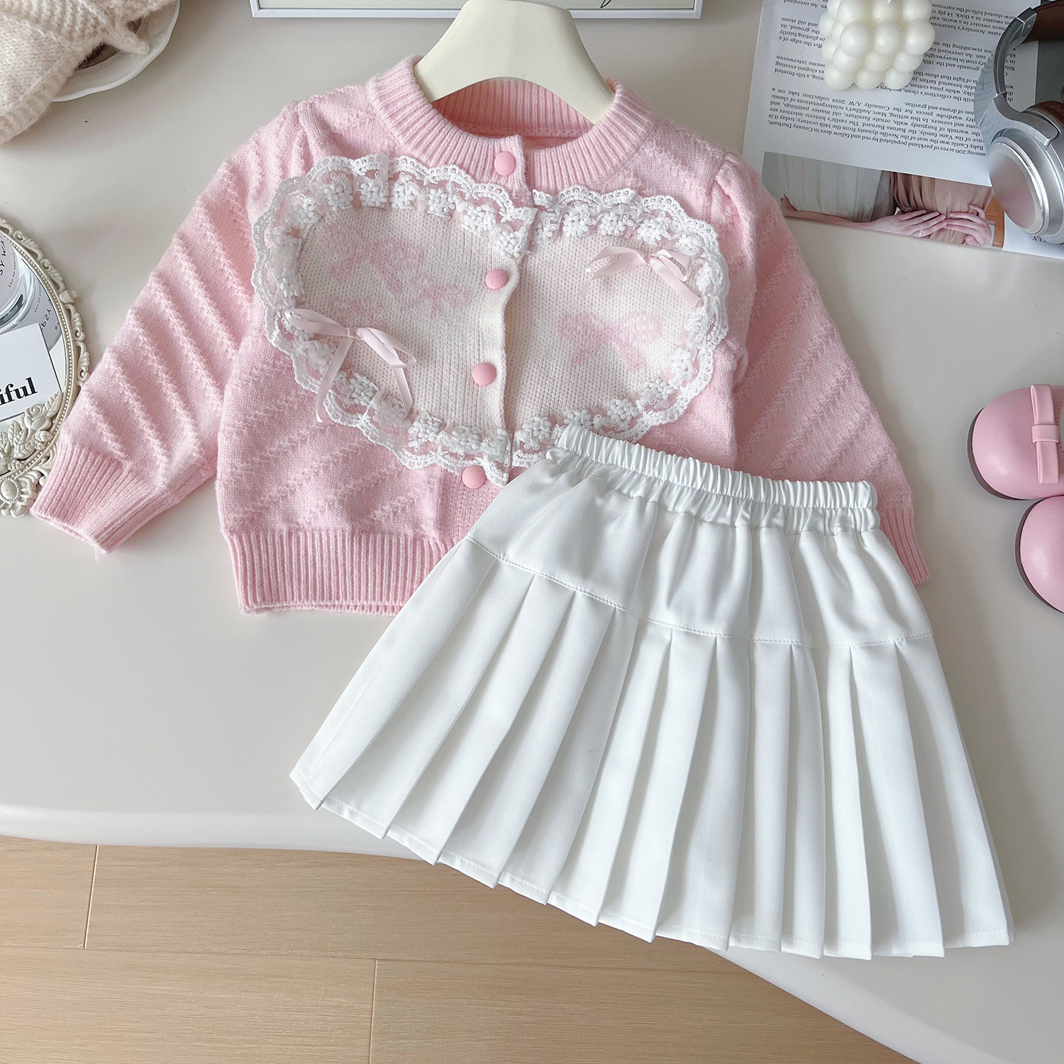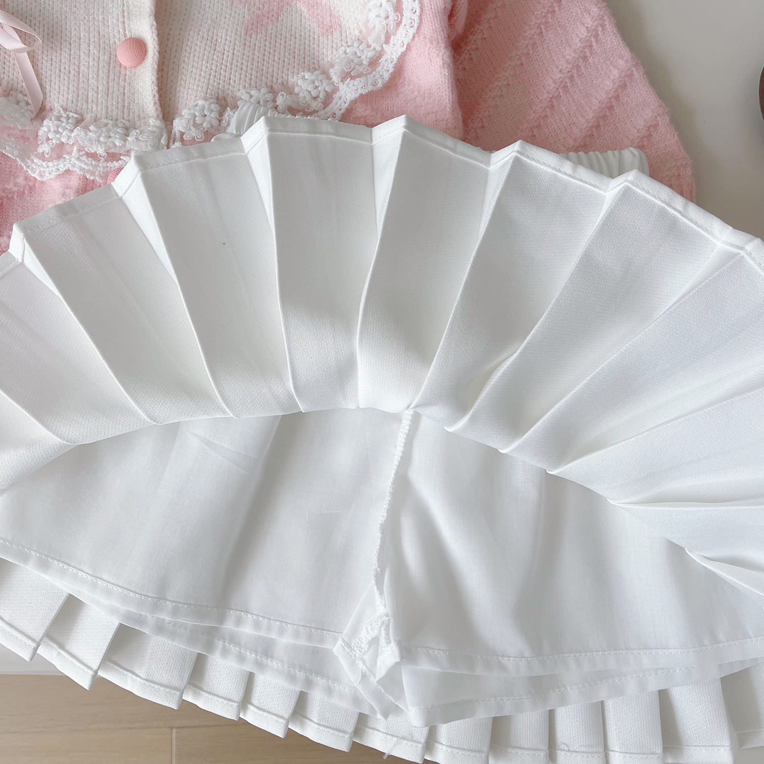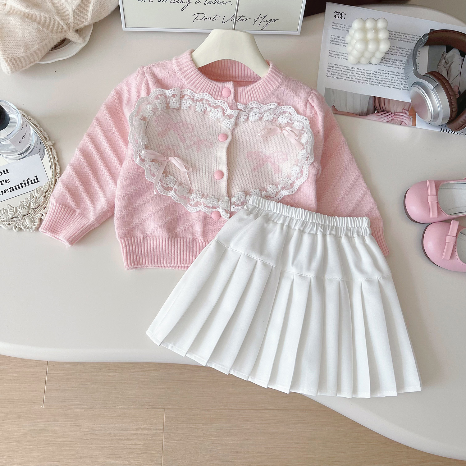 2024 년 가을, 새로운 한국 여자 핑크 니트 스웨터와 흰색 주름 치마 67558-67559스토어 가기