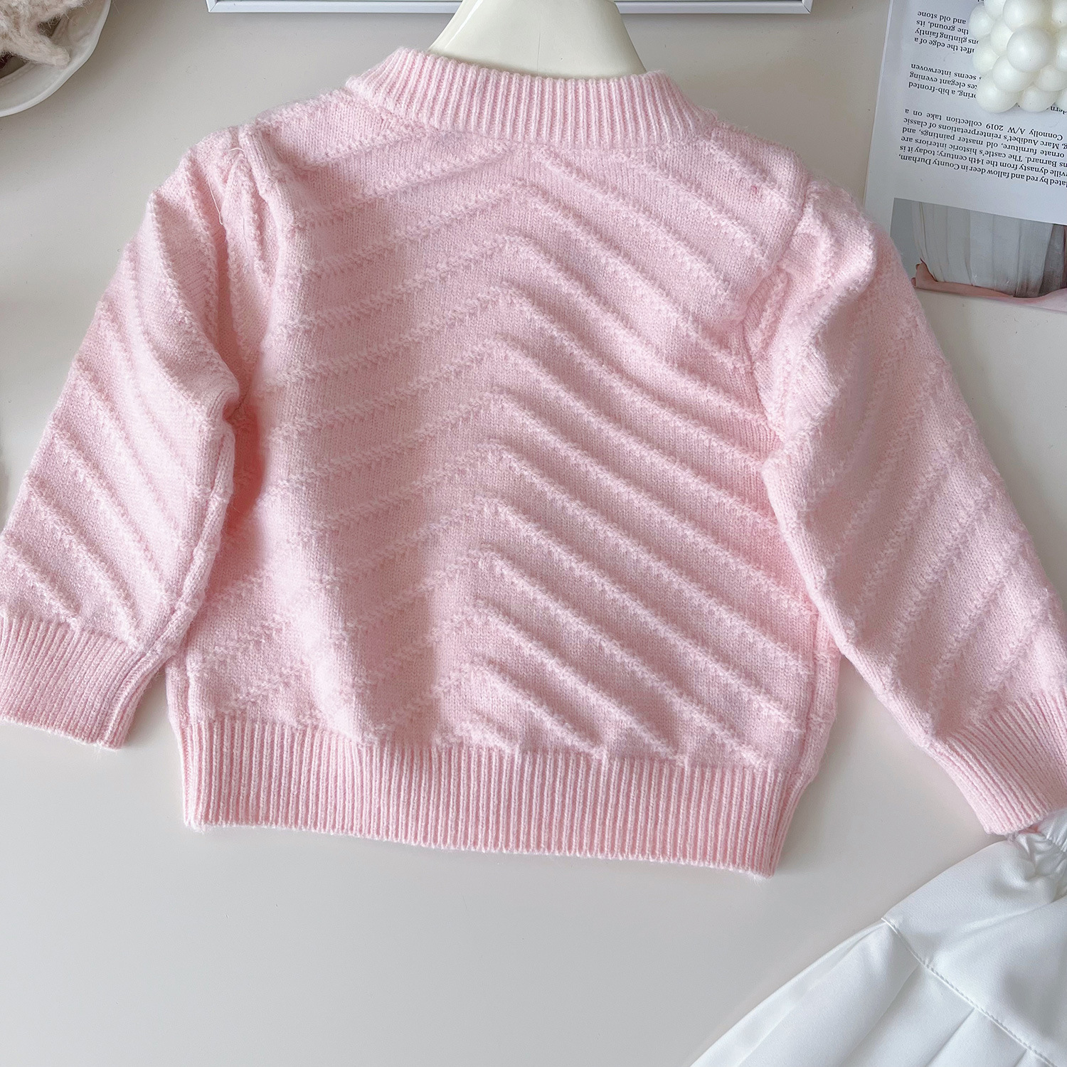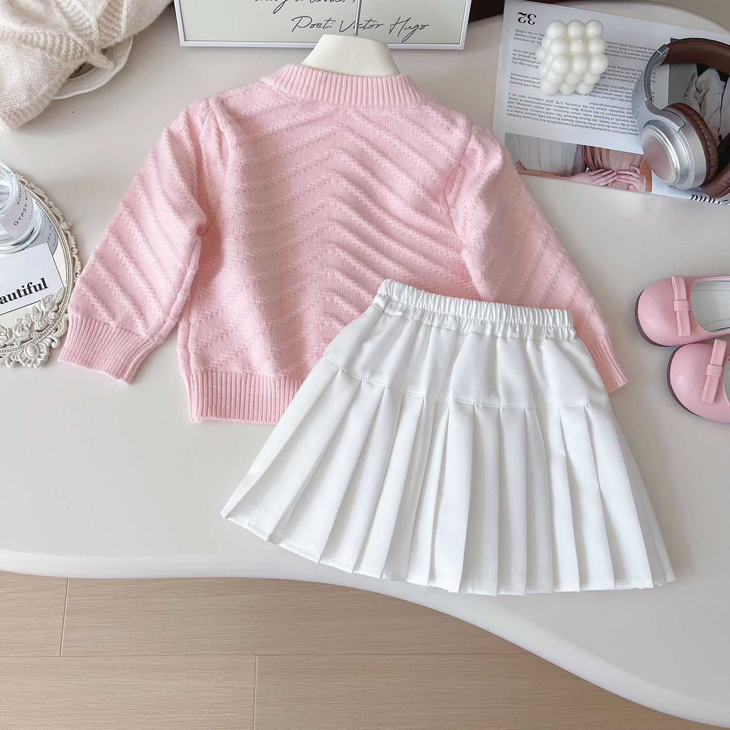 2024 년 가을, 새로운 한국 여자 핑크 니트 스웨터와 흰색 주름 치마 67558-67559