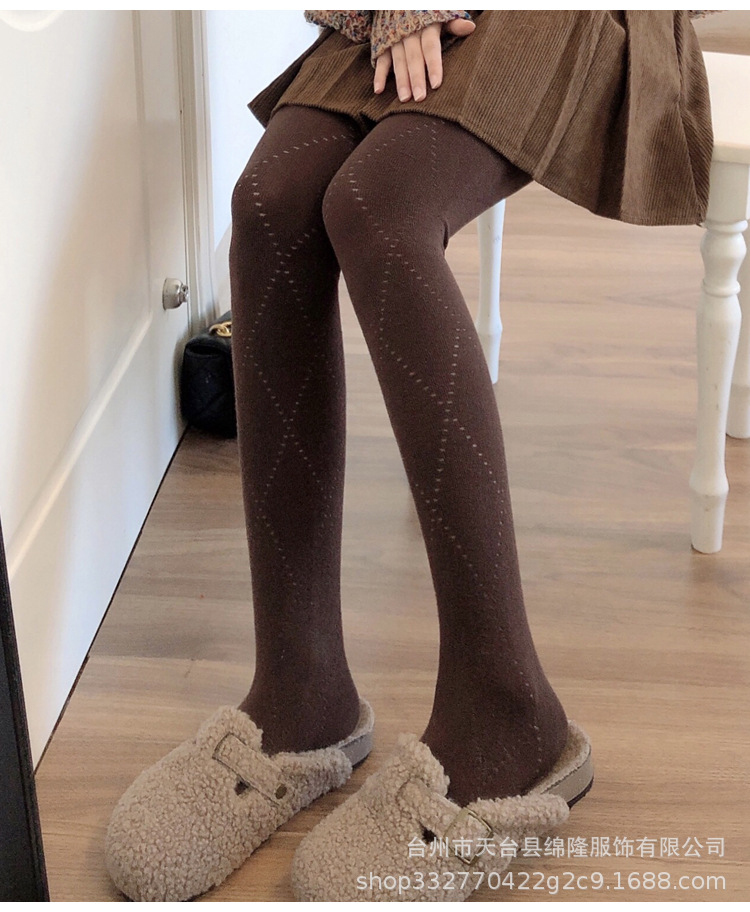 JK 스모크 그레이 레깅스 여성 가을과 겨울 라이트 그레이 팬티 스타킹 할로우 다이아몬드 모양의 격자 다크 브라운 색 바닥 양말