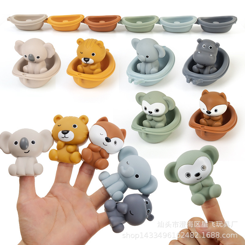 국경 간 어린이 욕실 쌓을 수있는 플로팅 보트 유아 목욕과 아기 목욕과 워터 핑거 커버 쌓인 보트 장난감