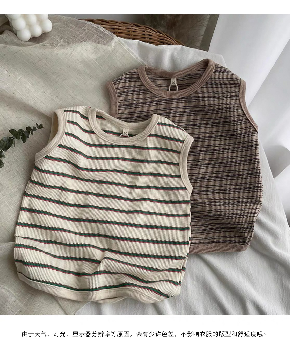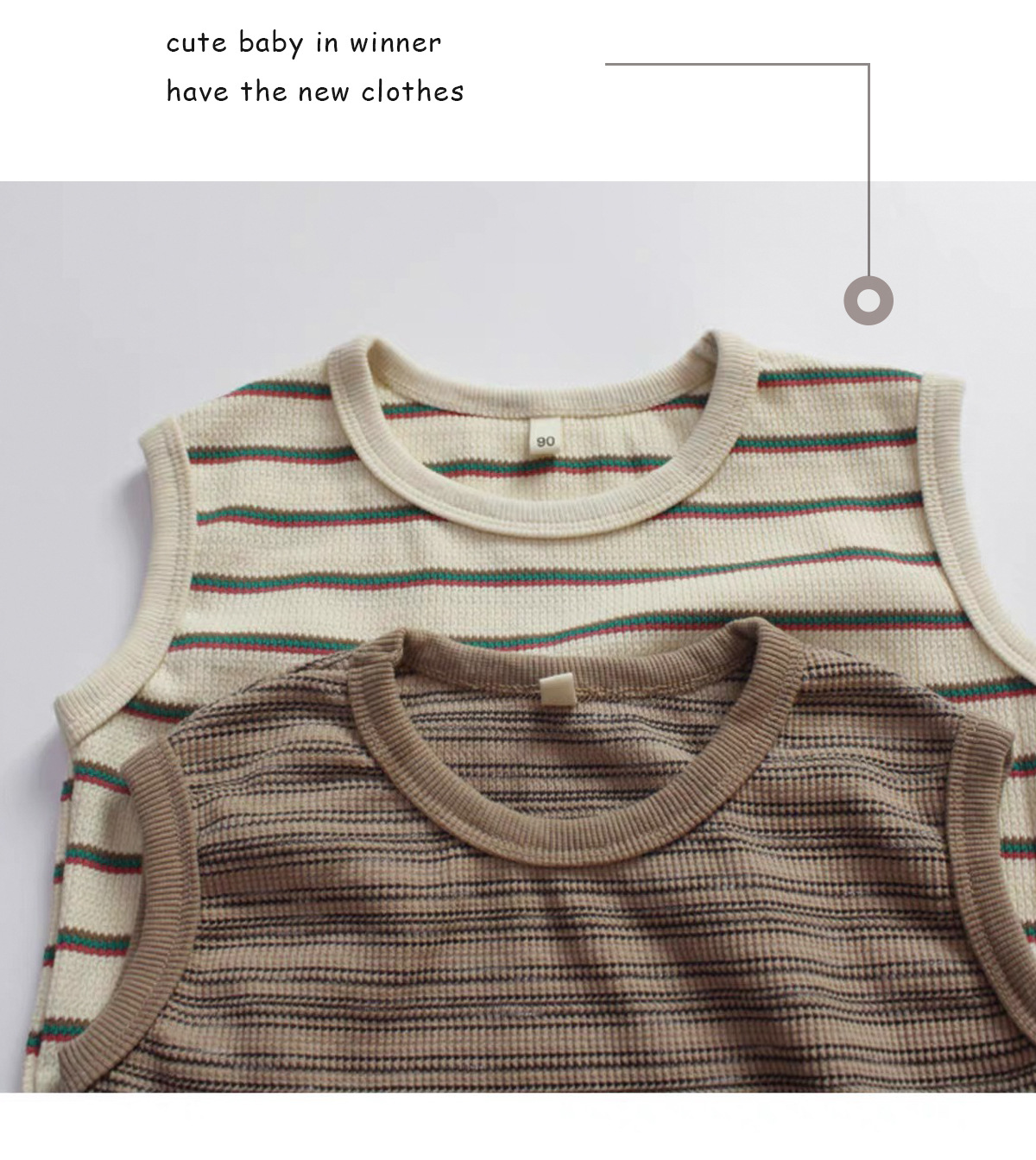 여름 어린이 조끼 한국 스타일 소년 최고 민소매 크루 넥 줄무늬 와플 아기 소년의 조끼 면화 카테고리 A스토어 가기