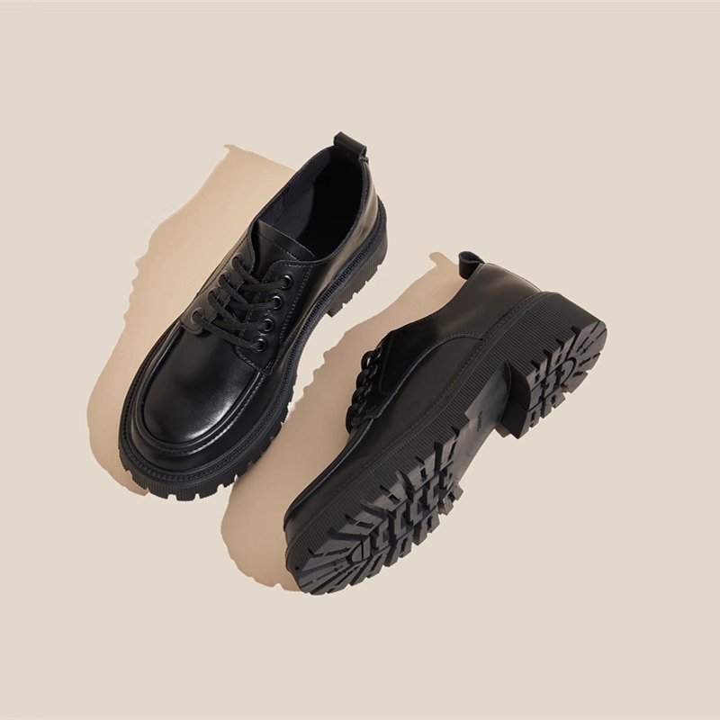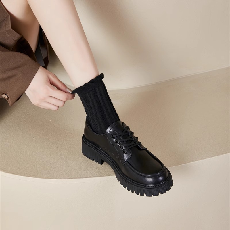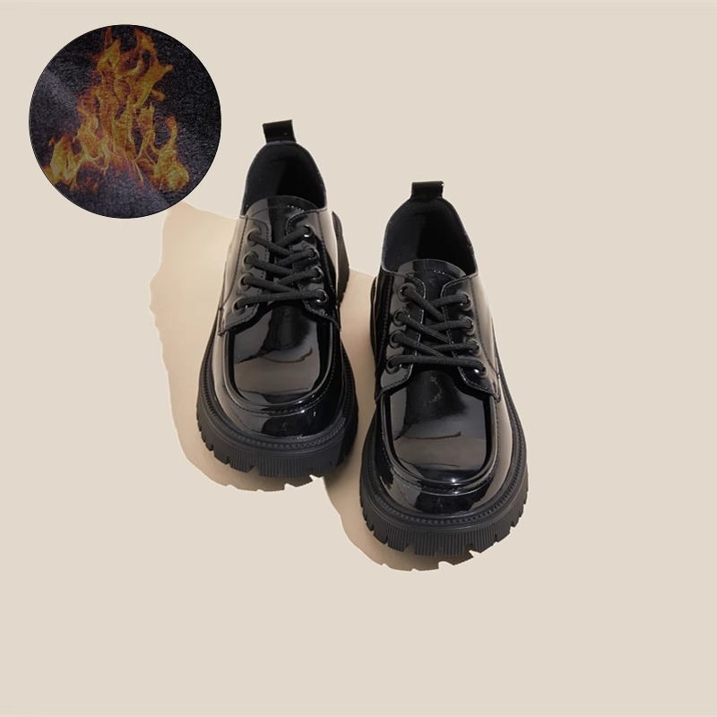 작은 가죽 신발 여성 영국 스타일 2025 새로운 가을과 겨울 기모 jk 스커트 로퍼 다목적 두꺼운 밑창 여성 신발