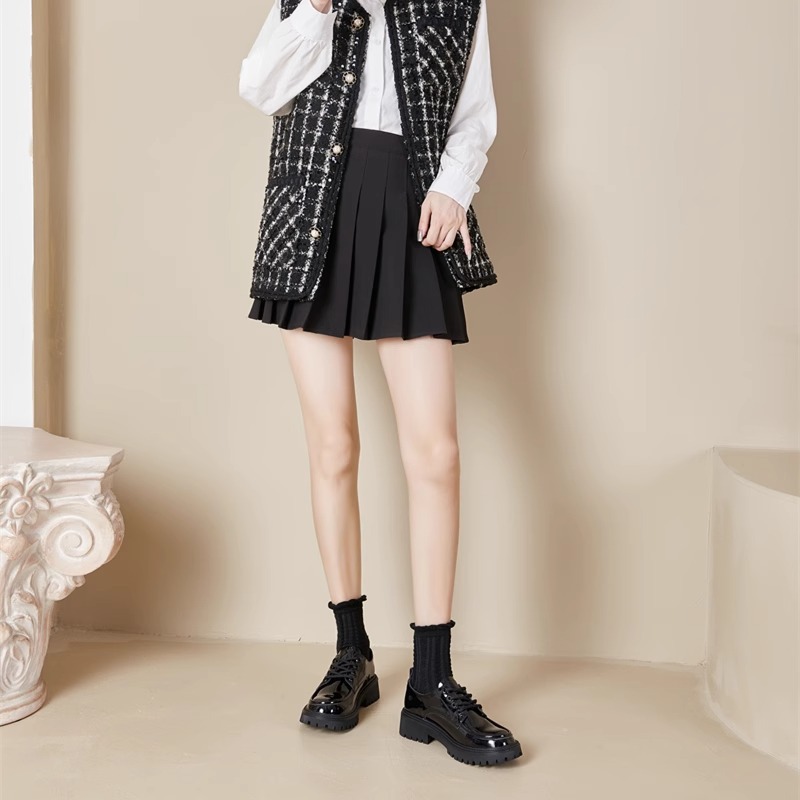 작은 가죽 신발 여성 영국 스타일 2025 새로운 가을과 겨울 기모 jk 스커트 로퍼 다목적 두꺼운 밑창 여성 신발스토어 가기