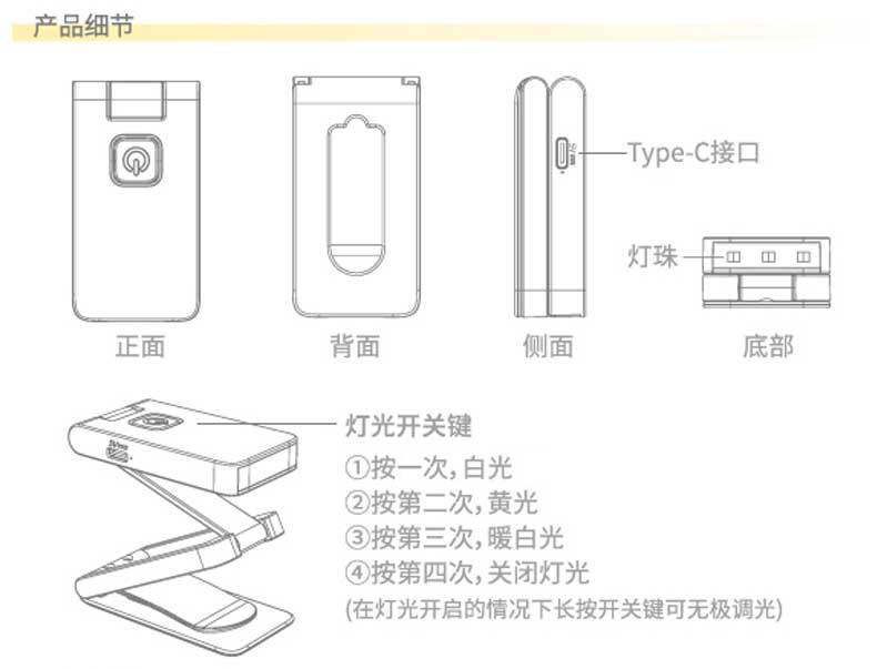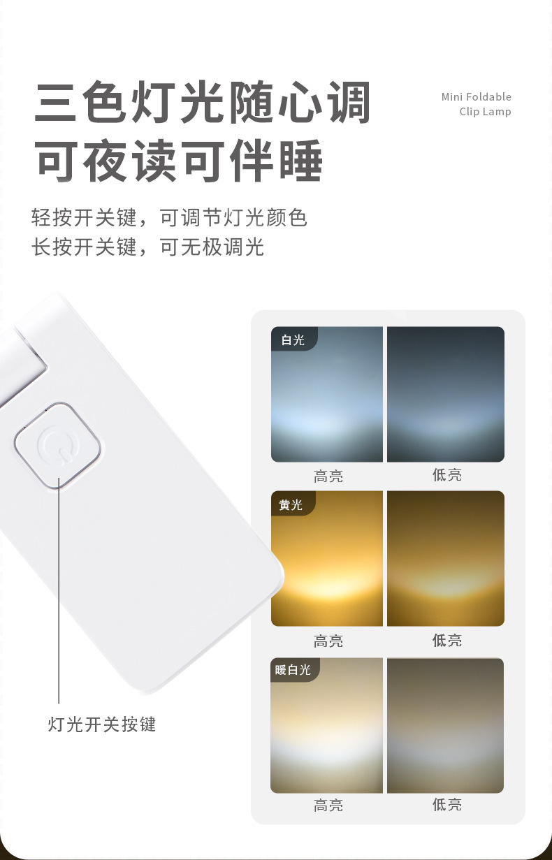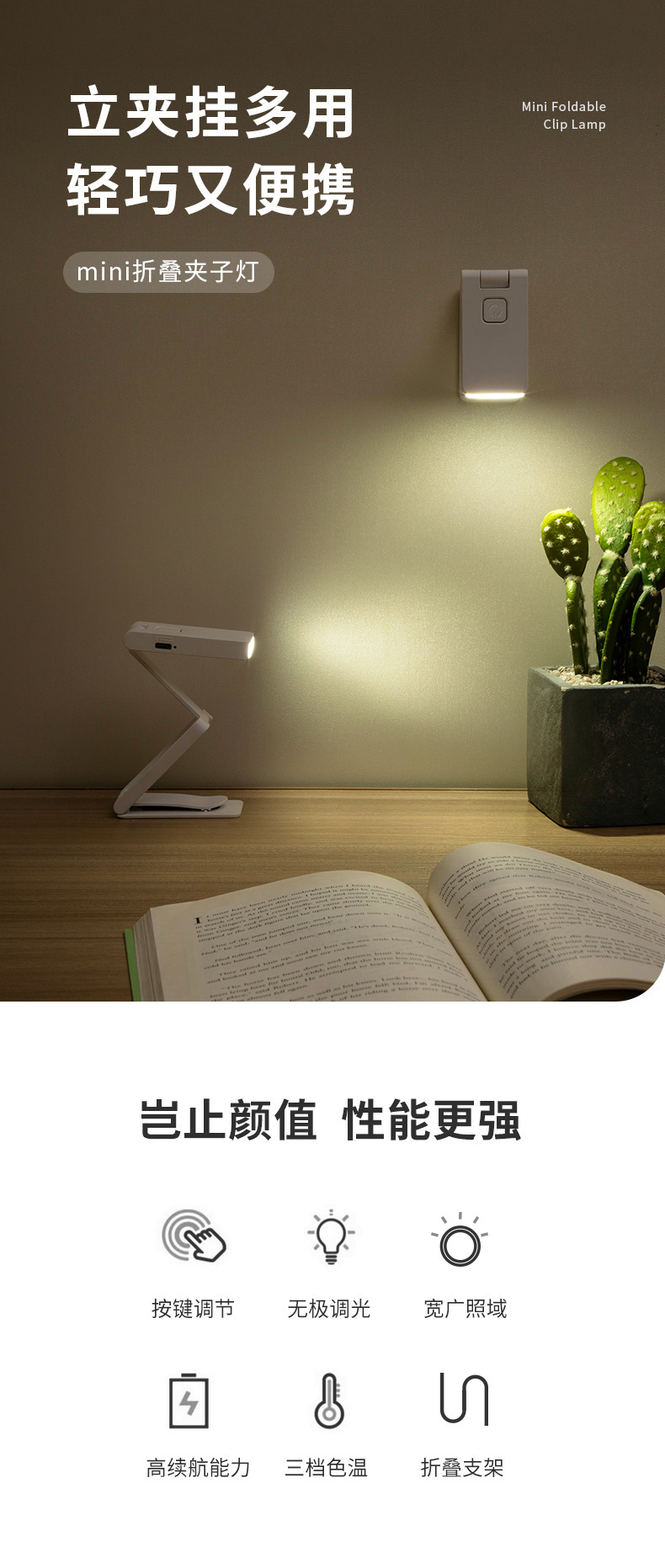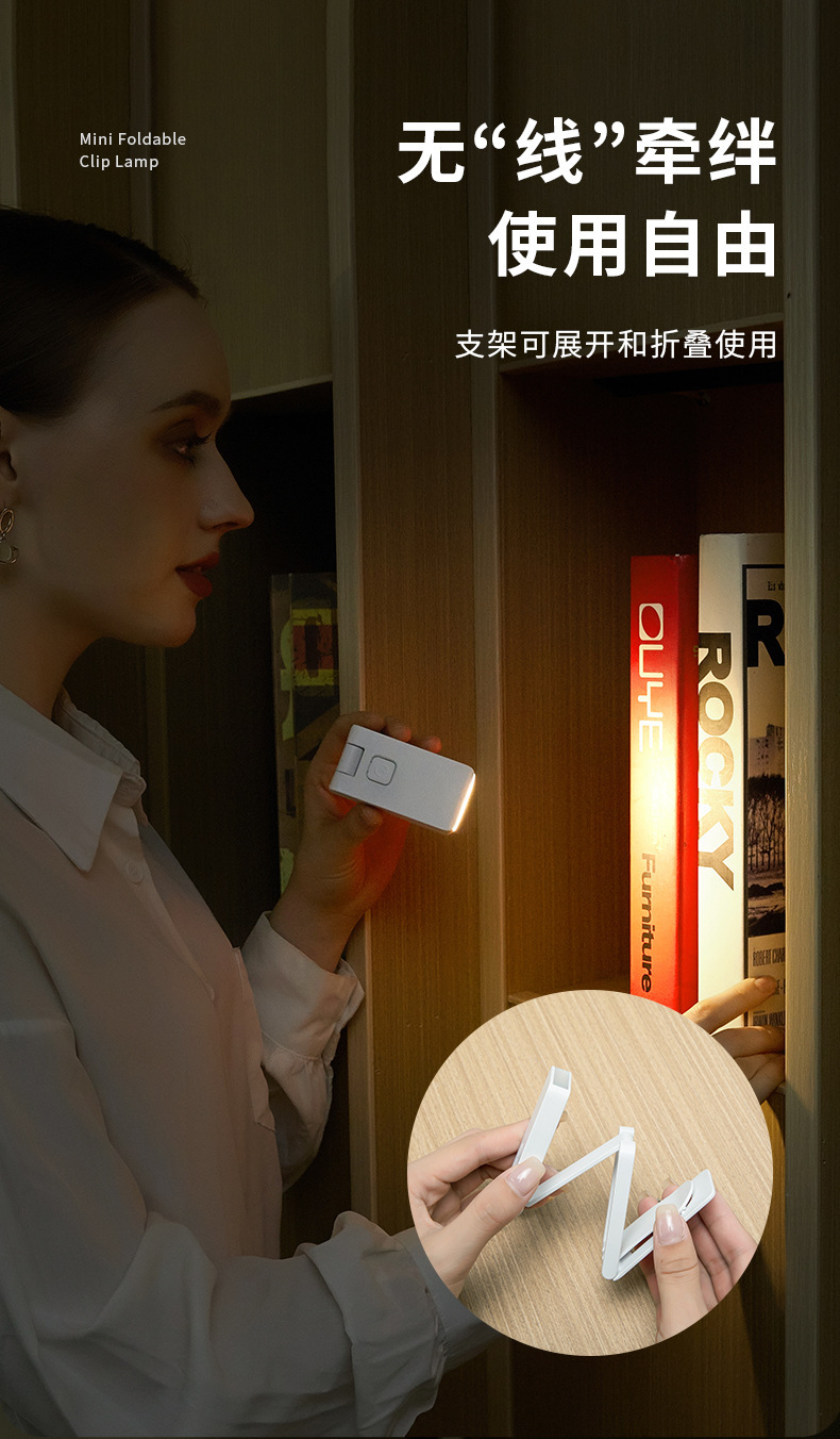 접이식 야간 휴대용 휴대용 야외 미니 클립 라이트 기숙사 창조적 인 선물 usb 충전식 독서 등스토어 가기