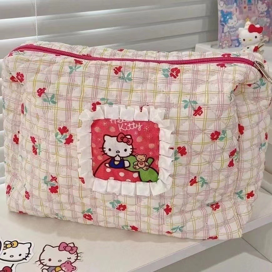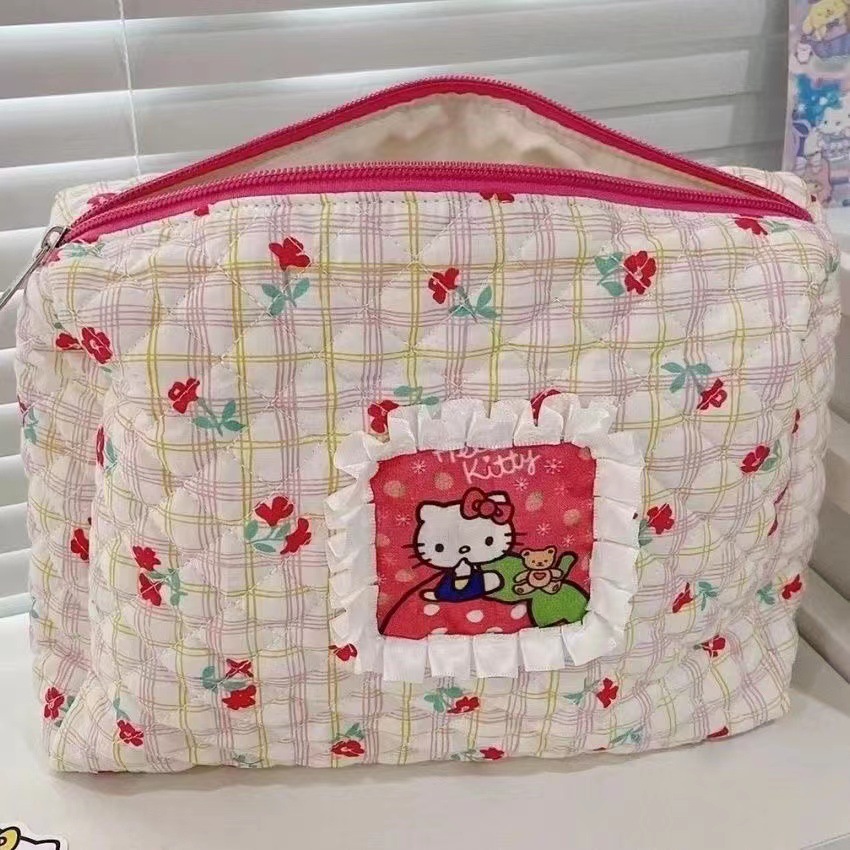 만화 고양이 대용량 화장품 가방 여행용 휴대용 배색 꽃무늬 학생 수납 가방 세면도구 가방 프린트 패턴스토어 가기