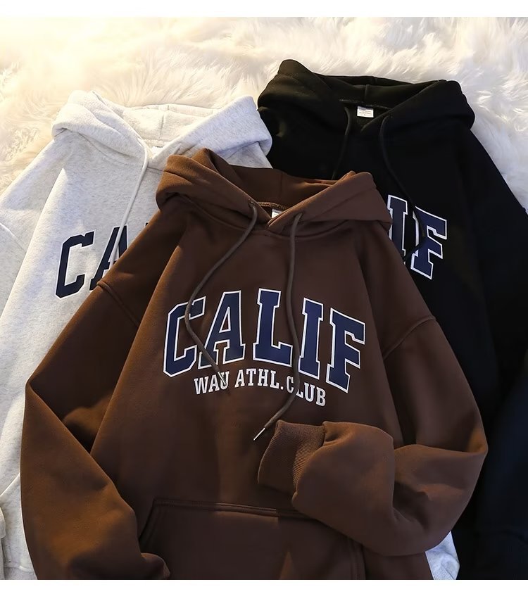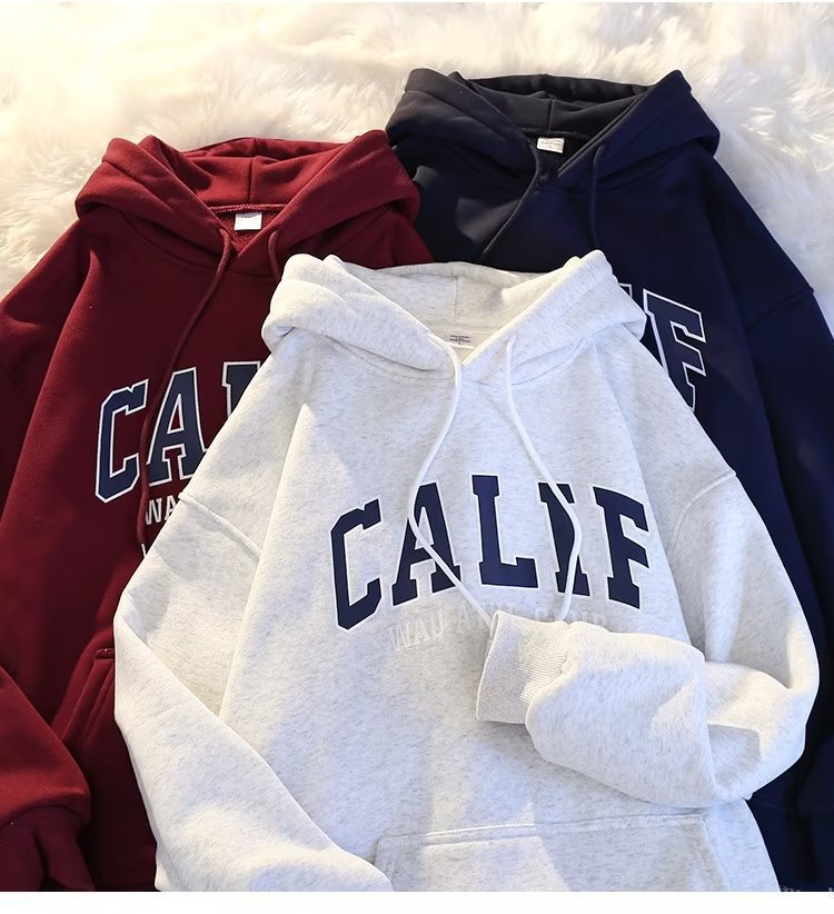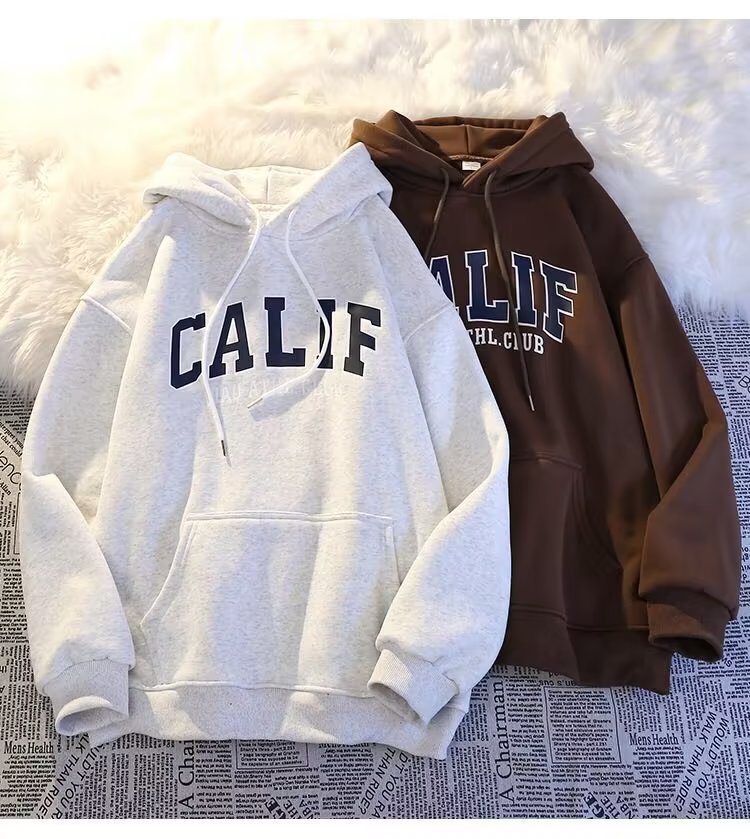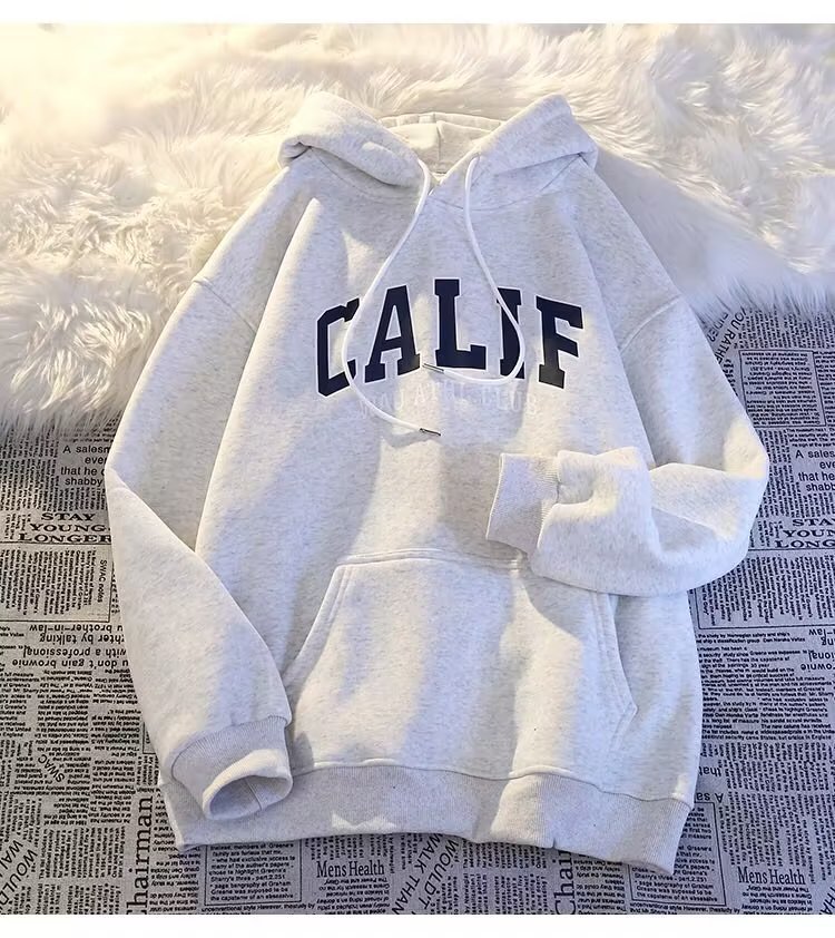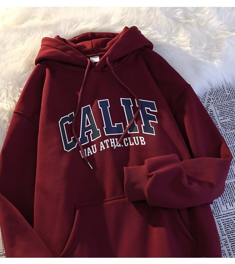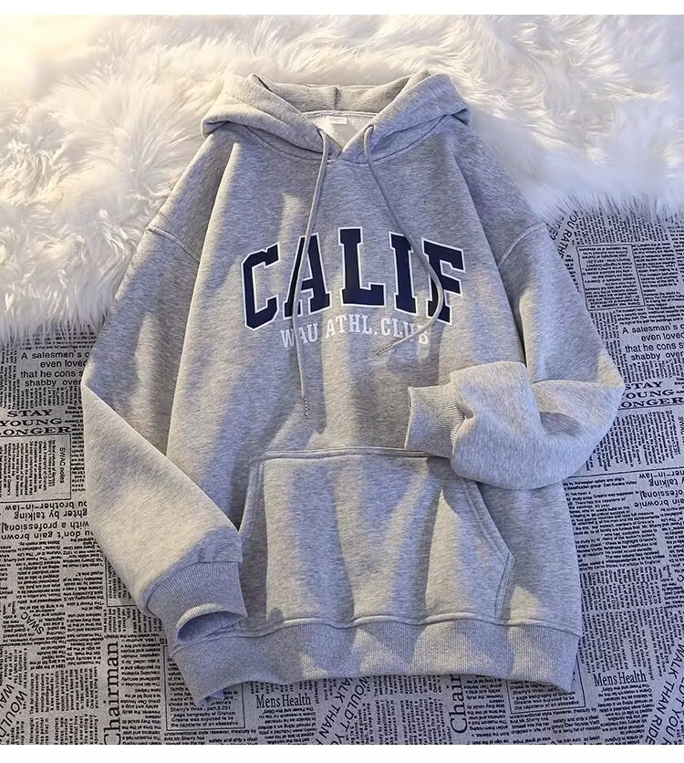 미국 스타일 레트로 레터 인쇄 된 후드 스웨트 남성과 여성을위한 가을 및 겨울 새로운 벨벳 재킷 캐주얼 올 매치 탑 트렌디스토어 가기