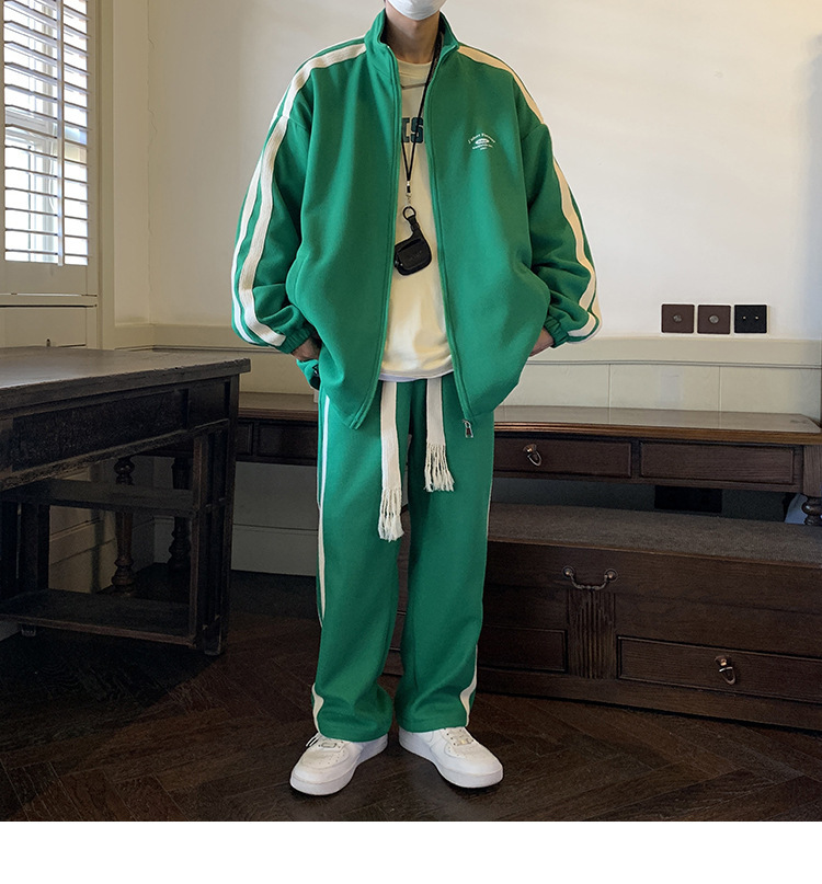 가을 청소년 캐주얼 카디건 스포츠 세트 남성 느슨한 대학 남성 잘 생긴 패션 브랜드 스웨터 바지 클래스 옷스토어 가기